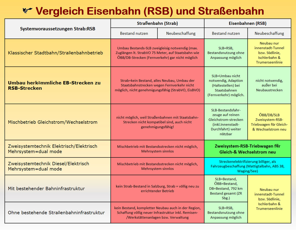 - Die Salzburger Lokalbahn ist eine klassische Stadtbahn, eine Überlandstraßenbahn im Personenverkehr und eine vollwertige Eisenbahn im Güterverkehr. Sie ist die betriebliche Basis eines Regionalstadtbahn-Netzes und somit Vorbild für die Adaptierung aller anderen Strecken.