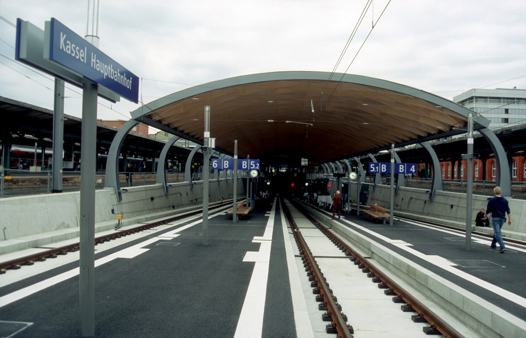 Die RegioTram genannte Regionalstadtbahn Kassel fährt unter dem Hauptbahnhofsgebäude von den DB-Eisenbahnstrecken ins innerstädtische Bahnnetz.