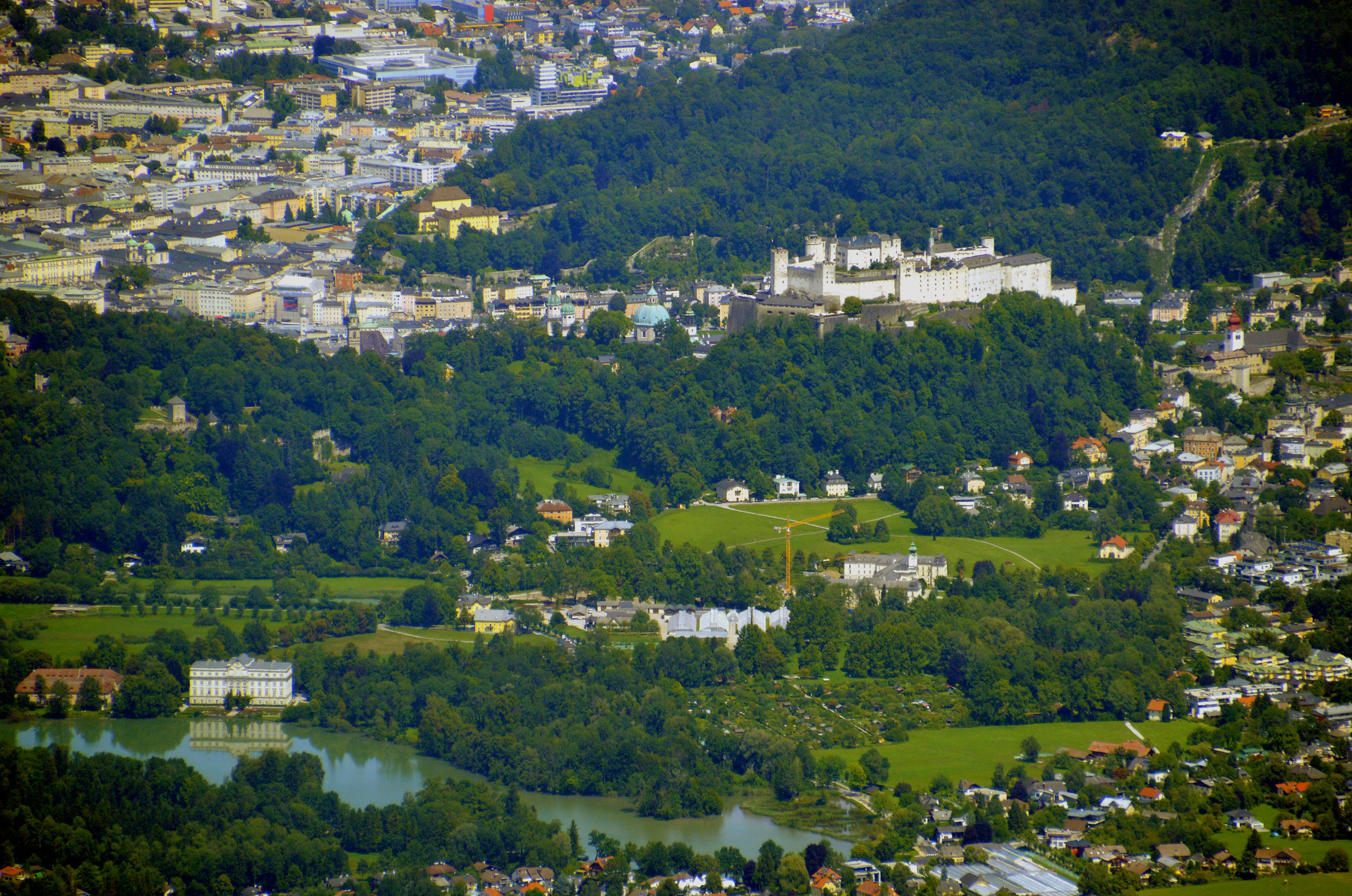 Salzburg von oben keine Luftbildaufnahmen Stadtteile "aus der Luft" Abgasglocke über dem Salzburger Becken