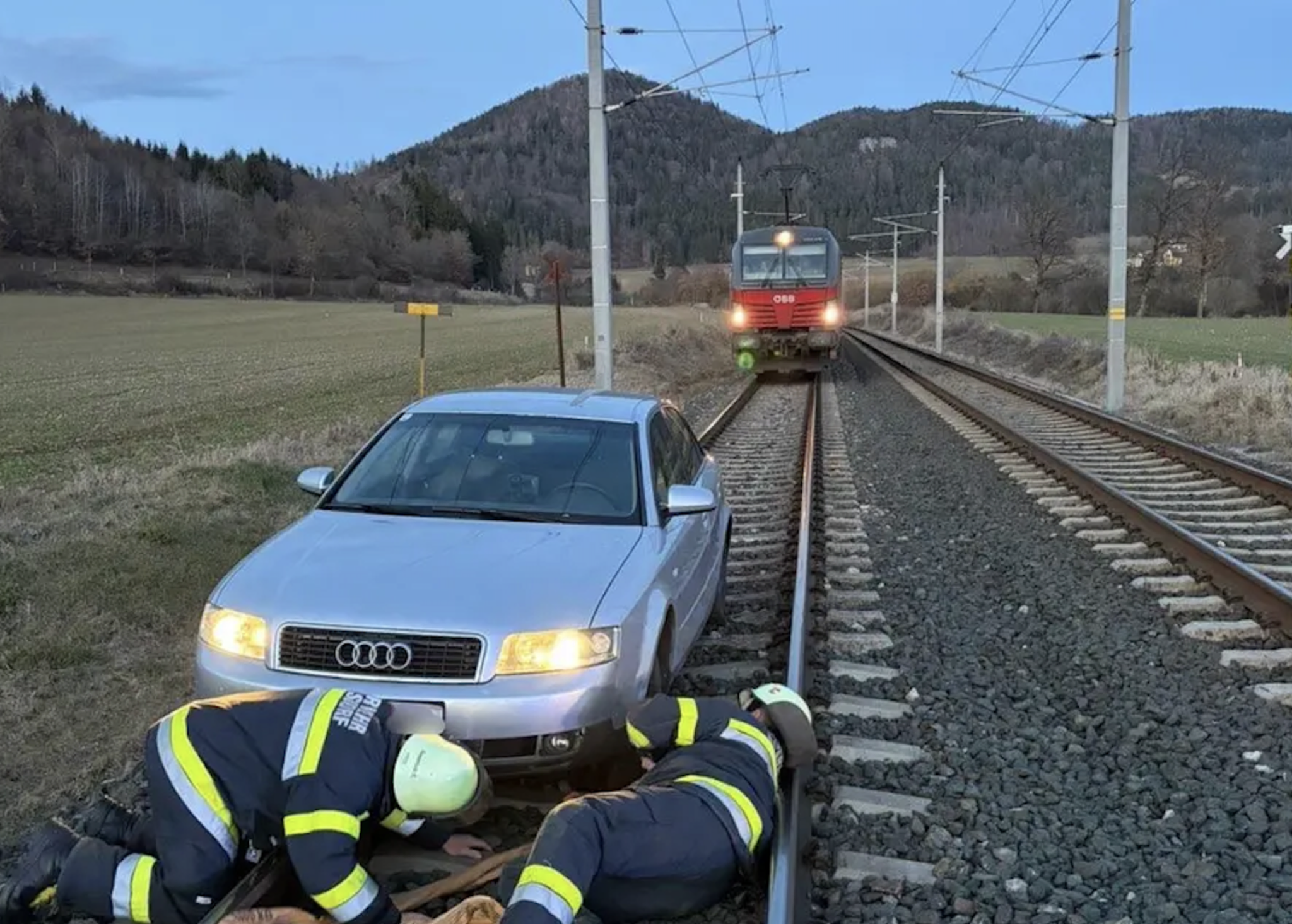 Zug verhindert Kollision: Alkolenker (71) fährt 500 Meter auf Gleisen in St. Veit