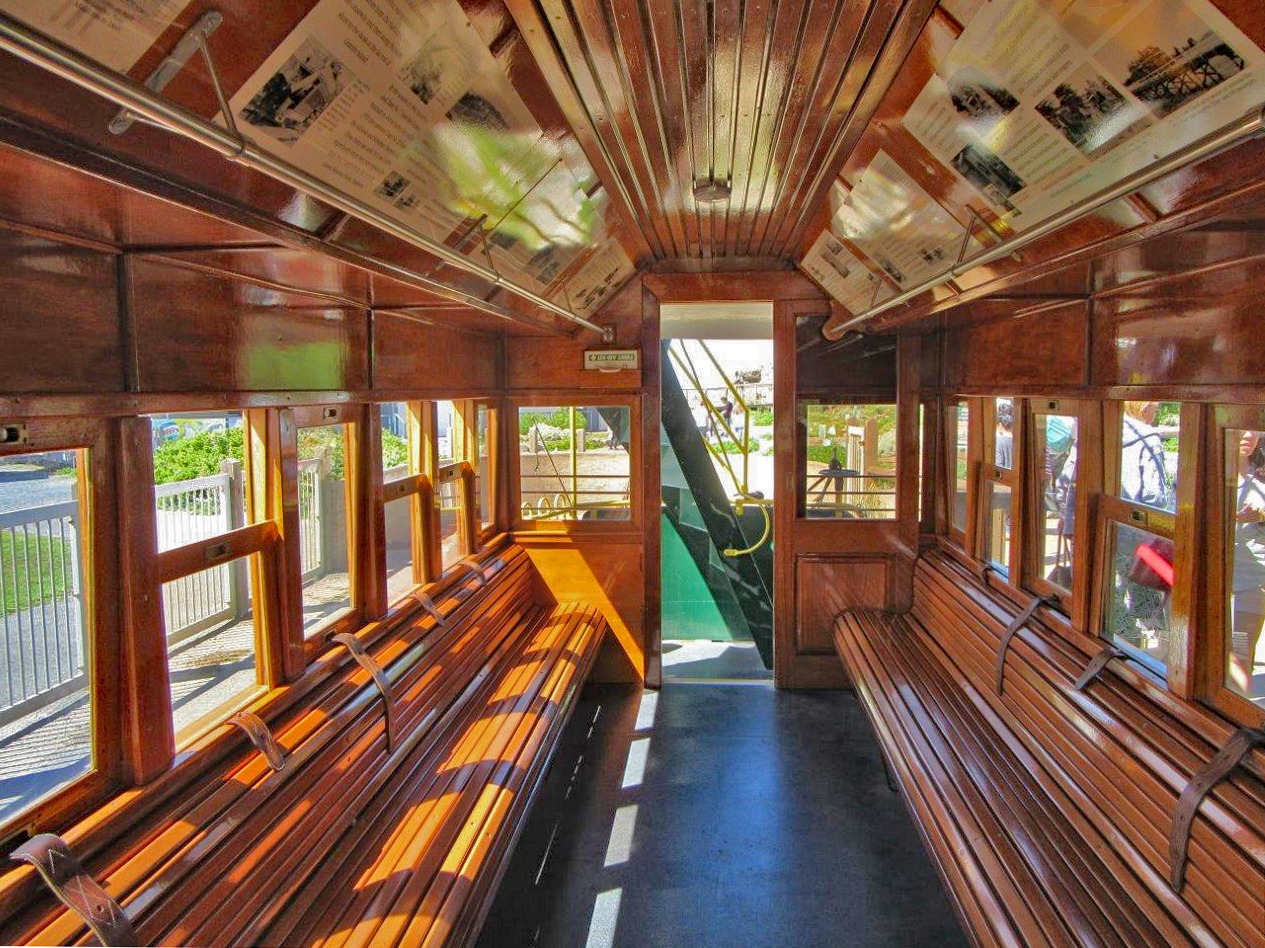 Pferdebahn in Victor Harbor Südaustralien, Blick in das Wageninnere der authentischen Replica Wagen aus 1986.