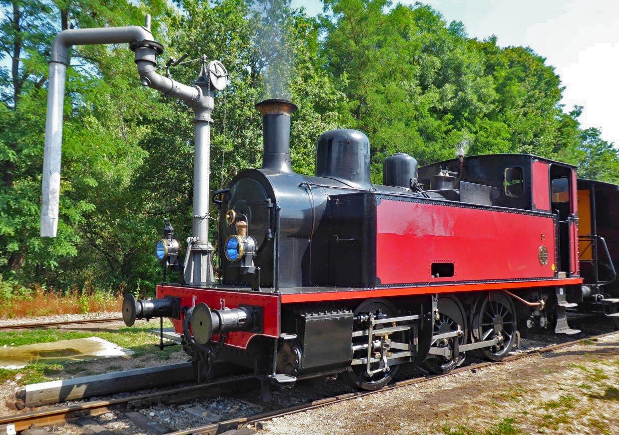 Dollertal Bahn - Eisenbahn Kleinod im Elsass, Lok 51 (La Meuse/1914) am Wasserkran in Burnhaupt.