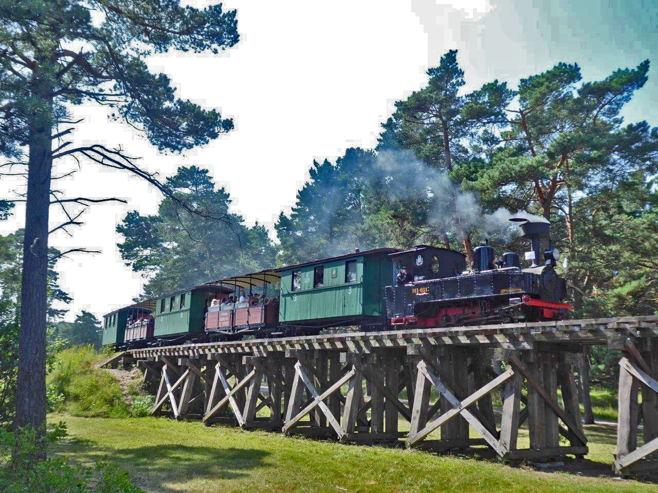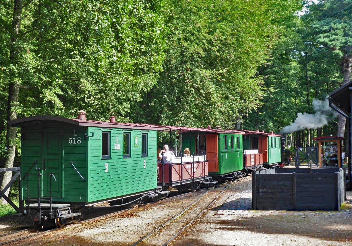 Gefahren wird zwischen Anfang Mai und Ende Oktober, stündlich zum Erlebnispark und dazwischen Rundfahrten auf der Kurzstrecke. Eingesetzt werden die beiden Brigadelokomotiven MI 611 (Henschel/1916) und MI 631 (O&K/1915), mit dazu passenden Brigadewaggons. Selbst an Wochentagen erfreut sich Schmalspurbahn eines großen Zuspruchs, ein Besuch sei jedenfalls wärmstens empfohlen. Hier kann man richtig“ 600mm Luft“ schnuppern.
