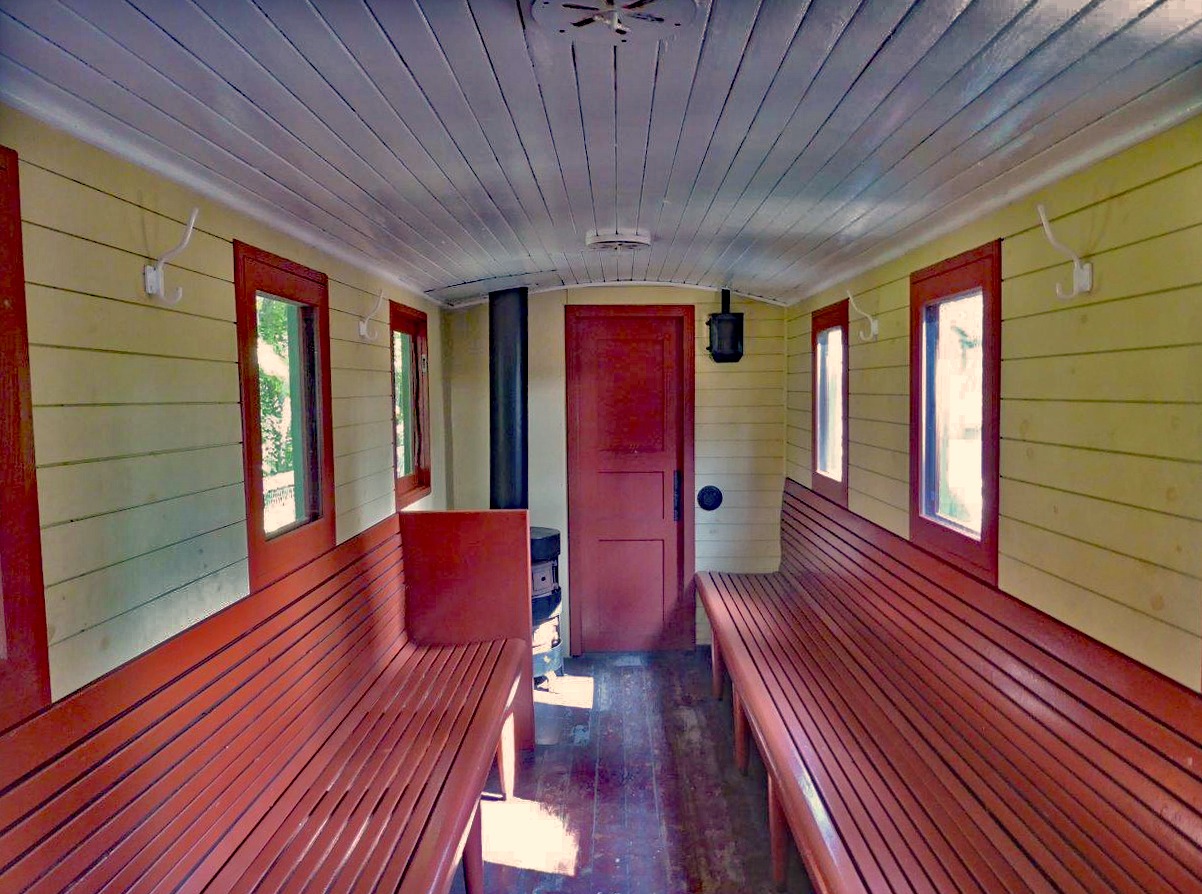 Ventpils/Windau - 600mm Paradies in Kurzeme Lettland, Der Blick in den spartanischen Innenraum eines 3. Klasse Brigadewaggons.