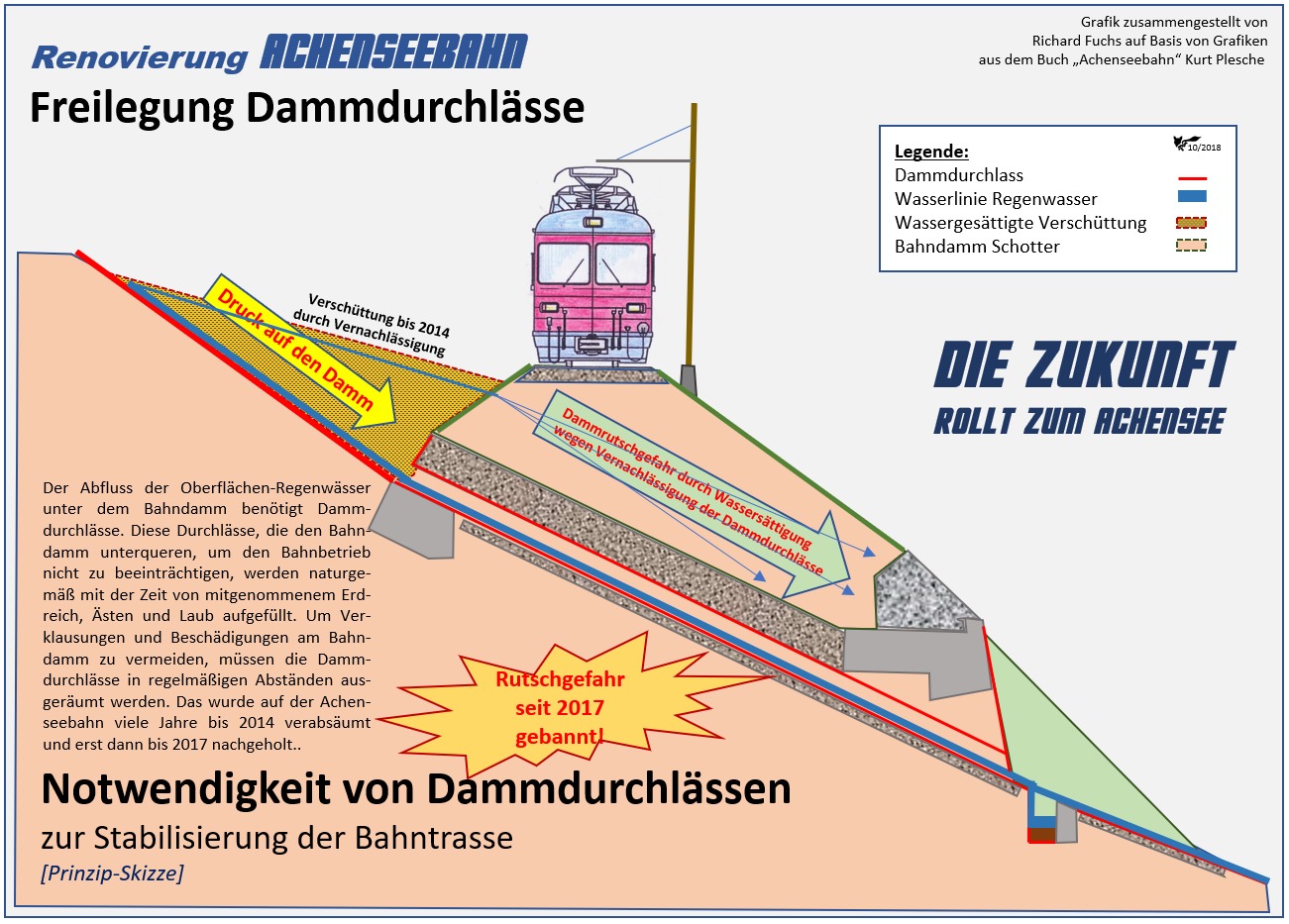 Zwei Aktionäre der Achenseebahn aus Salzburg, einer ist gleichzeitig der Chef des Tiroler Verkehrsver¬bundes, der andere ist ein Wirtschaftstreuhänder, haben die fatale Abwärtsentwicklung der Achenseebahn erkannt und versucht 2013 die Notbremse zu ziehen. Der bisherige Verkehrsverbund-Chef übernahm das Steuer der Achenseebahn und machte das, was seit Jahrzehnten überfällig war, nämlich die Renovierung und Zukunftsentwicklung der Bahn und das mit den massivsten Widerständen seitens der Politik und fanatischen Bahngegnern, wobei den Achensee-Gemeinden kein Ruhmesblatt zusteht. Da diese „DKT-Spieler“ offensichtlich nicht wissen, was sie da anstellen, wurde der eigentlich erfolgreiche Geschäftsführer mit 31.12.2019 in die Wüste geschickt, mit allen daraus resultierenden Konsequenzen. Die Logik gibt der Achenseebahn keine Chance mehr!