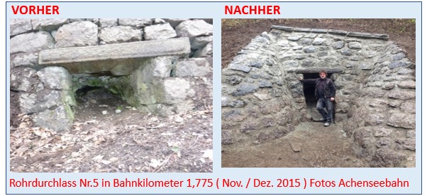 Die Dammdurchlässe der Achenseebahn waren jahrzehntelang vernachläßigt worden und mussten ab 2014 akribisch renoviert werden.
