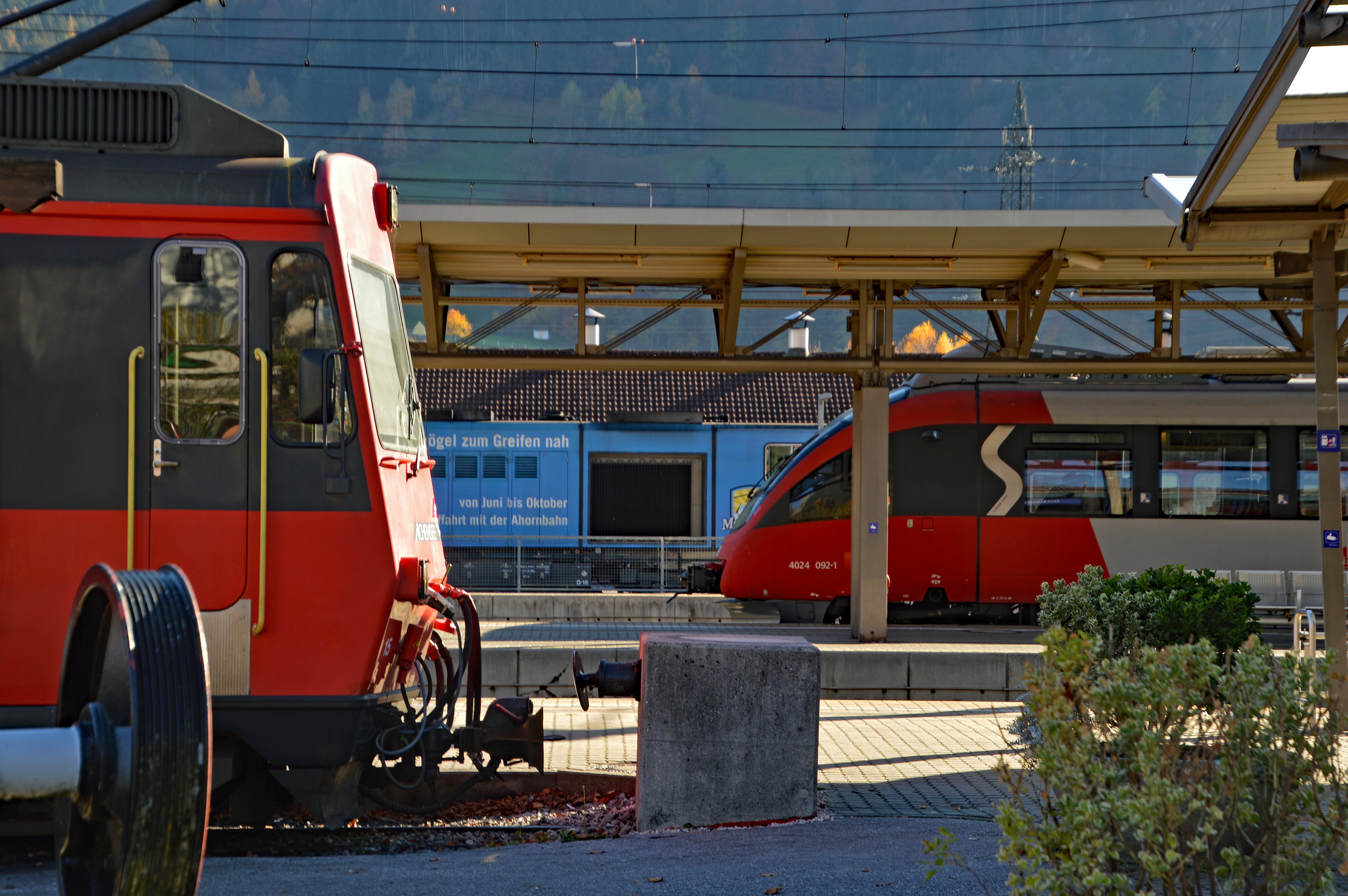 Um Platz in der Remise zu schaffen, müssen die Appenzeller-Triebwagen ins Freie, auf Bahnsteig 1 im Bahnhof Jenbach, ausweichen. Es steht zu befürchten, dass die Politik in Tirol ihre eigene Zukunft der Mobilität verschrottet!