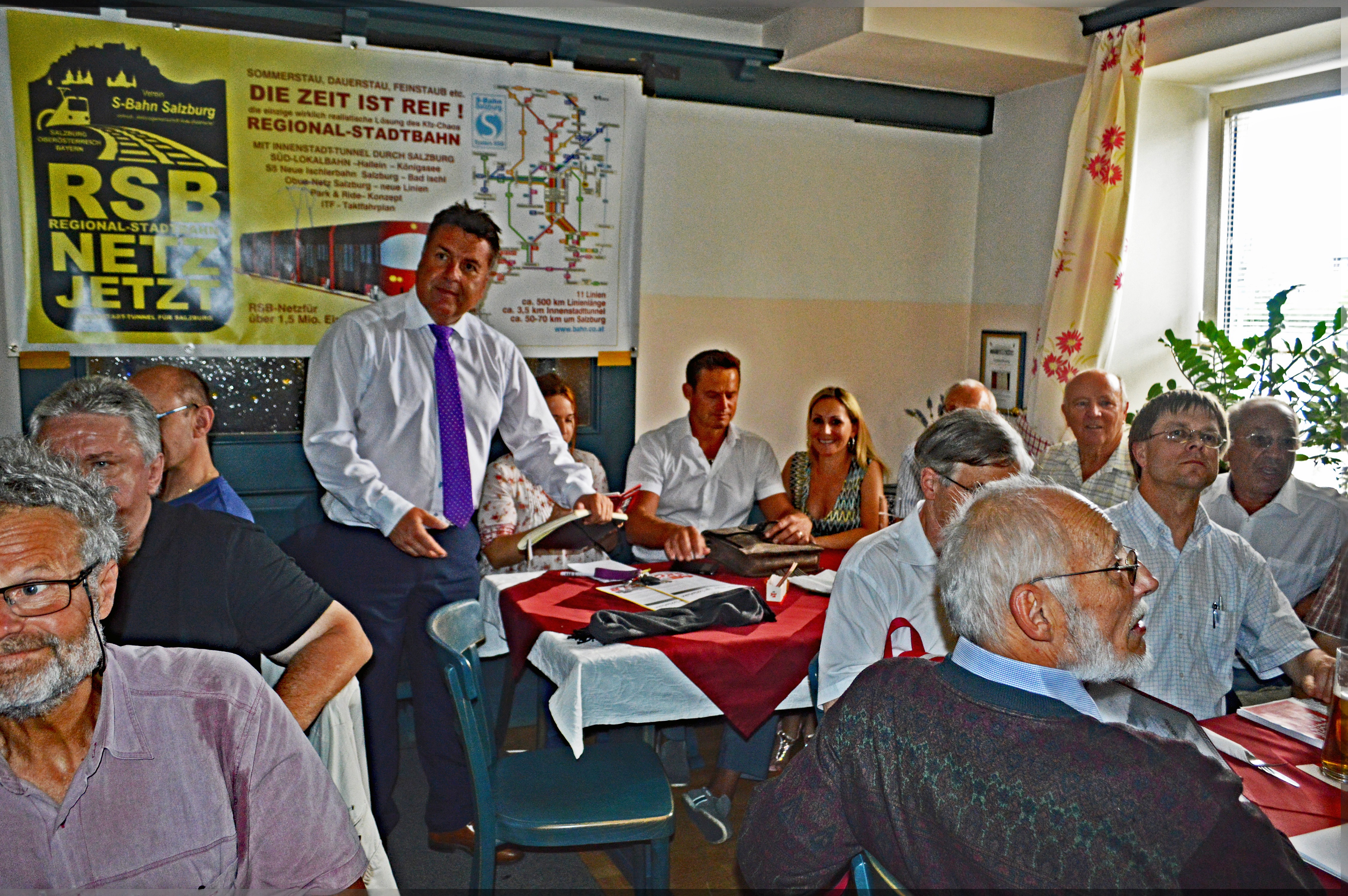 Kirchenwirt Itzling Besuch Verkehrslandesrat Mayr bei Verein "S-Bahn" 27. Juli 2016