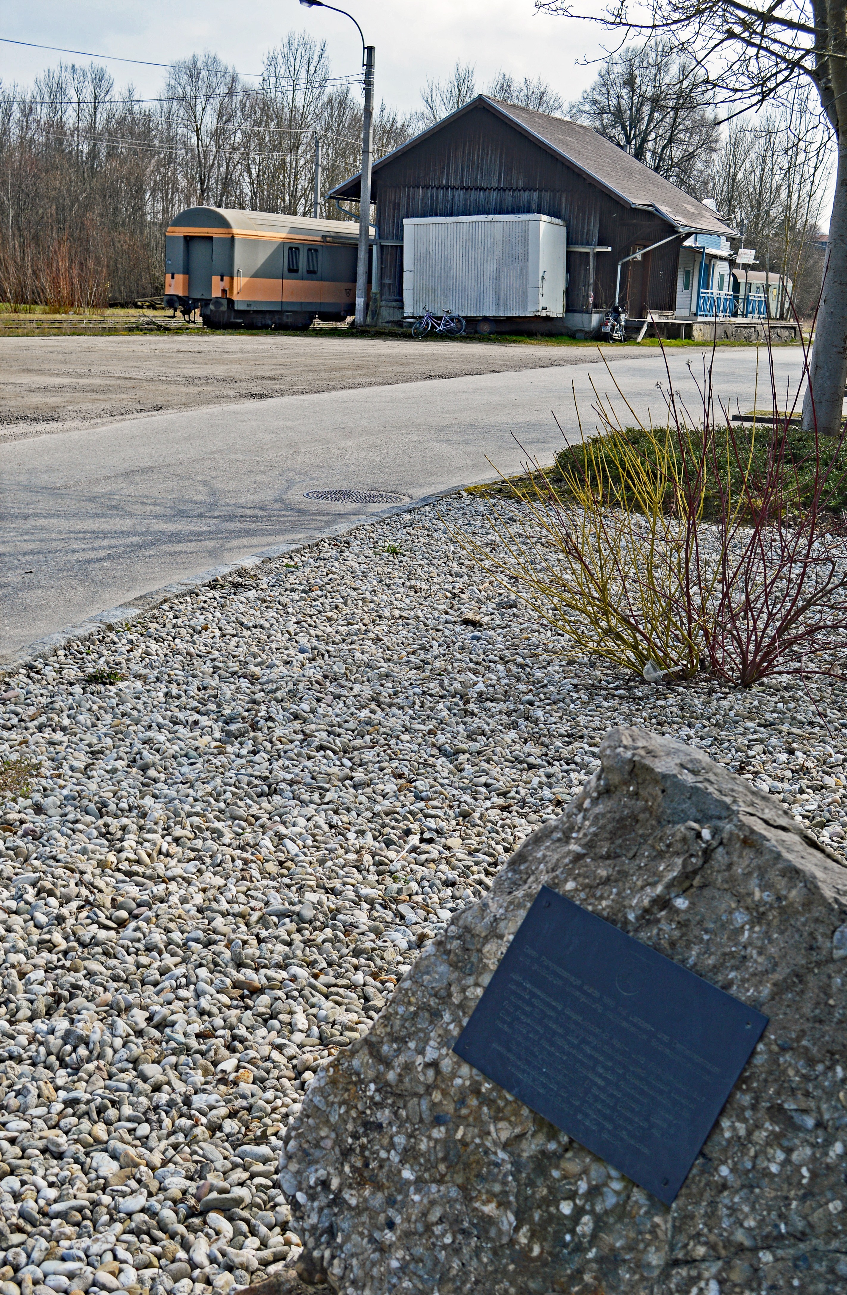 Bahnhof Haag am Hausruck, so elegant und in gutem Zustand sich der Lokschuppen befindet, so verwahrlost sieht das ehemalige Bahnhofsareal heute aus. Eine defekte Bushaltestelle und der dahin rostende Postwaggon sind der traurige Rest.