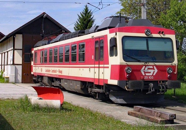 Bahnhof Haag am Hausruck, Bis 2009 sah es dort so erfreulich aus, modere Zweisystemtriebwagen bestimmten die letzten zwei Jahrzehnte das Bild der Lokalbahn nach Haag, hier der ET 25. 103 (Bombardier/1989).
