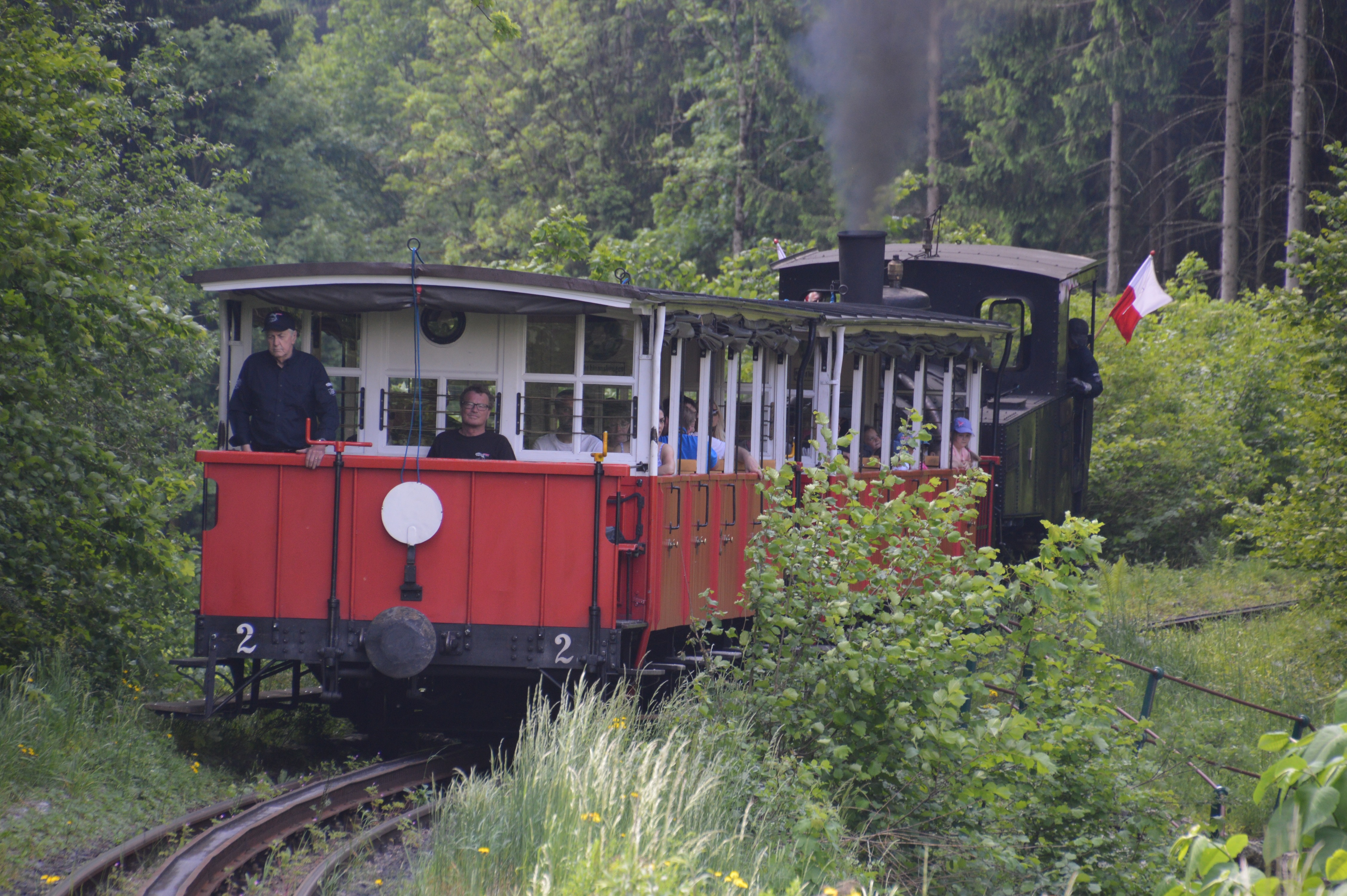Lebenszeichen der Achenseebahn, Lok 3 "Georg" und erster Beiwagen in Ursprungszustand.