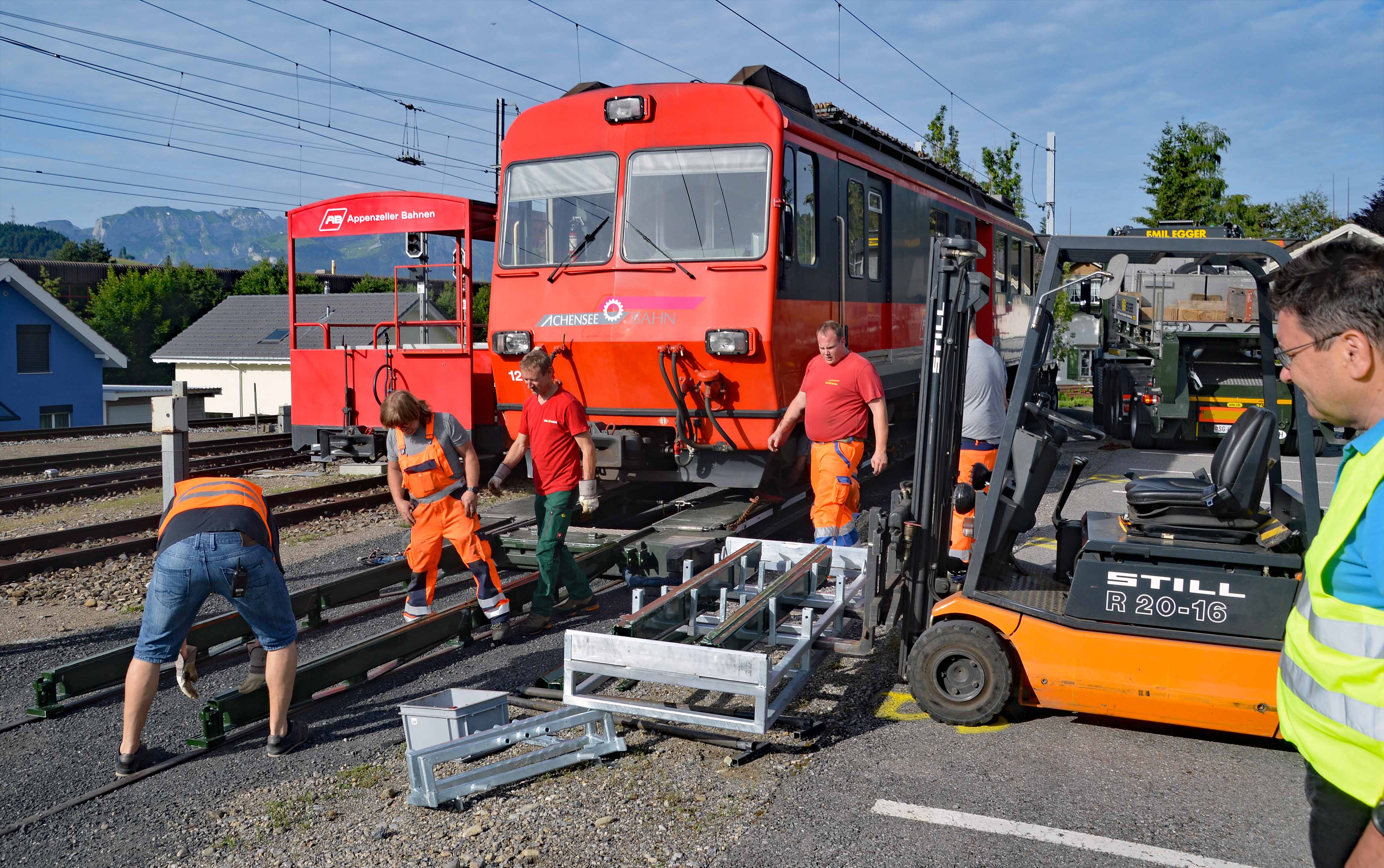 Verladung Appenzellerbahn-Triebwagen für Achenseebahn