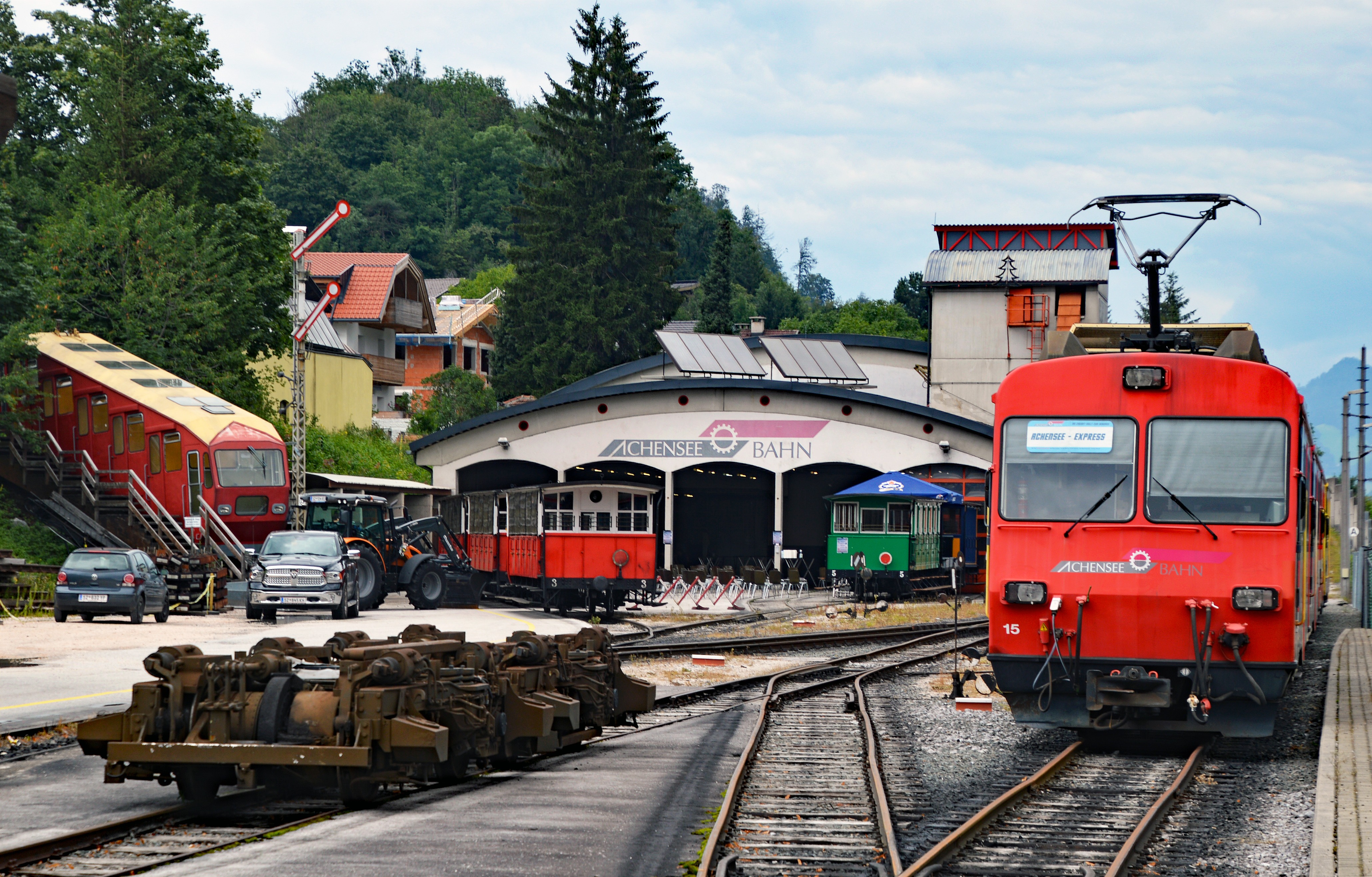 Achenseebahn: Im Bahnhof Jenbach stehen die umweltfreundlichen elektrischen Triebwagen, die in der Achenseeregion eine zukunftsweisende Mobilität bringen würden, wenn das Land Tirol keinen Finanzierungsboykott der Achensee betreiben würde.