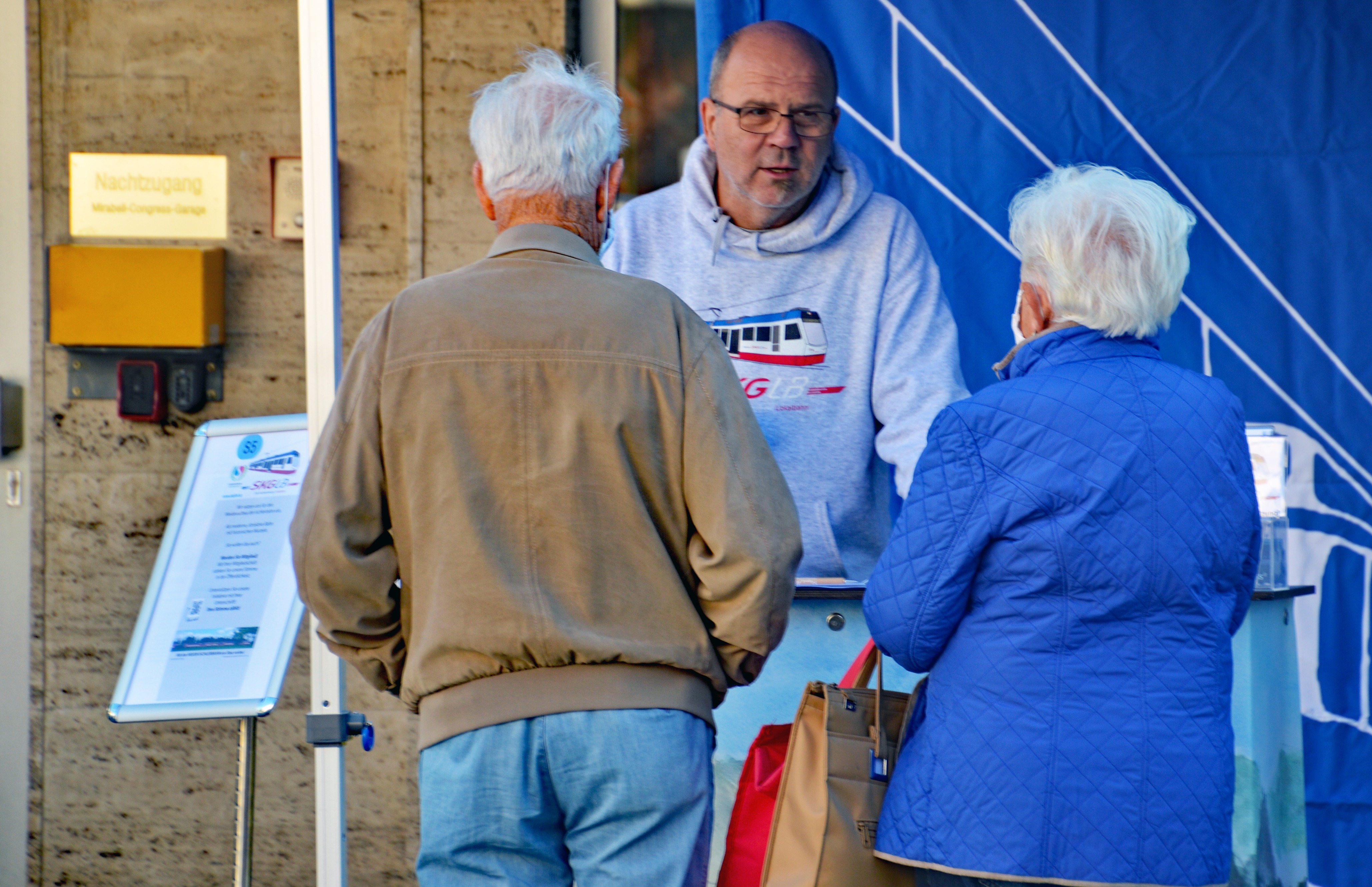 Info-Stand Club SKGLB am Mirabellplatz beim Schrannenmarkt zur Wiedererrichtung der Ischlerbahn