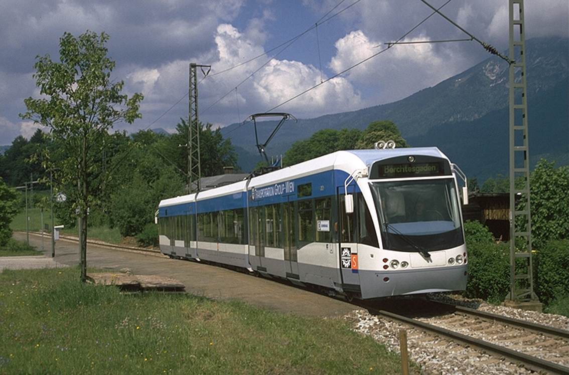 Zur Erweiterung des Salzburger Verkehrsverbundes ins Berchtesgadener Land im Jahr 1997 war einige Tage der Zweisystem-Triebwagen 1004 der Saarbahn, nach der Auslieferung aus dem Werk in Wien, auf der Berchtesgadener Land Bahn unterwegs.