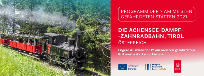 In close cooperation between the “1000 Thousand” association and “ICOMOS Austria”, the Achenseebahn was proposed for the EUROPA NOSTRA project “7 Most Endangered” - the 7 most endangered European cultural heritage sites. The Achenseebahn is now at the top of the shortlist for the “7 Most Endangered” 2021, see attached official press release from EUROPA NOSTRA.