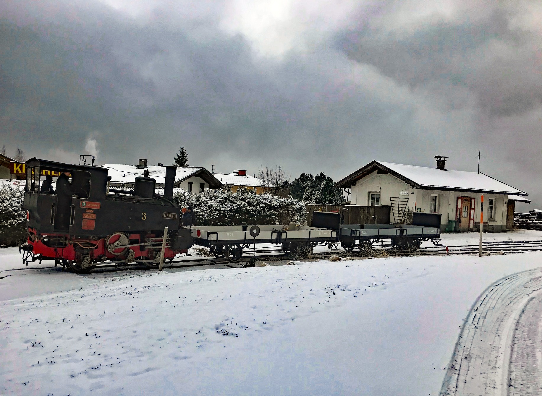 In the course of the summer, the association took over the first lawyor’s fees for the Achenseebahn, as the main shareholders, the cities of Jenbach, Maurach and Achenkirch were no longer willing to reimbourse them. In the meantime, these monthly costs are paid privately by the CEO. The autumn was characterized by work on the route: the slopes of the rack route and the fire protection strips were cut free, the trenches were cleared and restored. The construction trains of the Achenseebahn ran until December, see photo from the last train on December 10th in Eben.