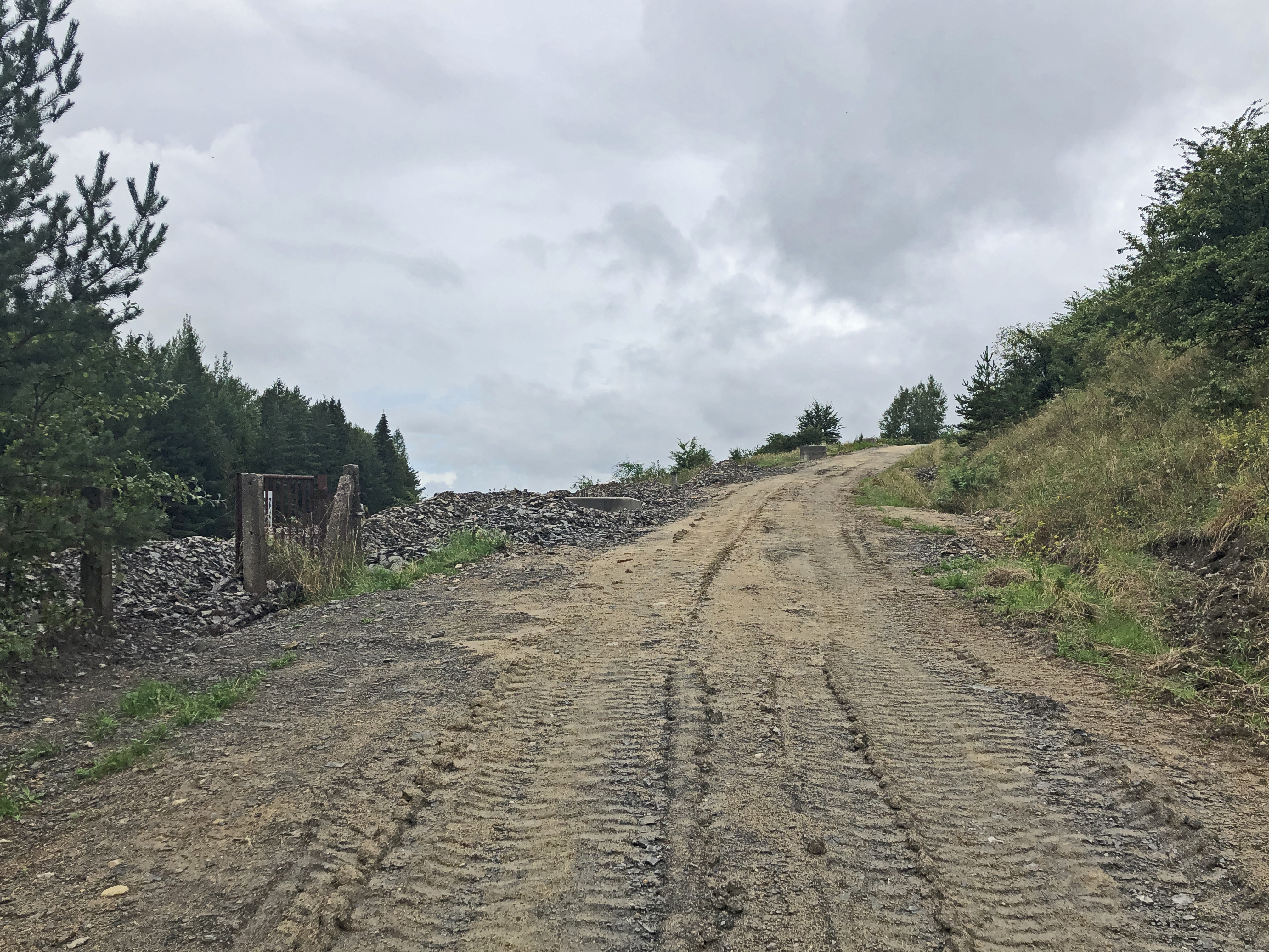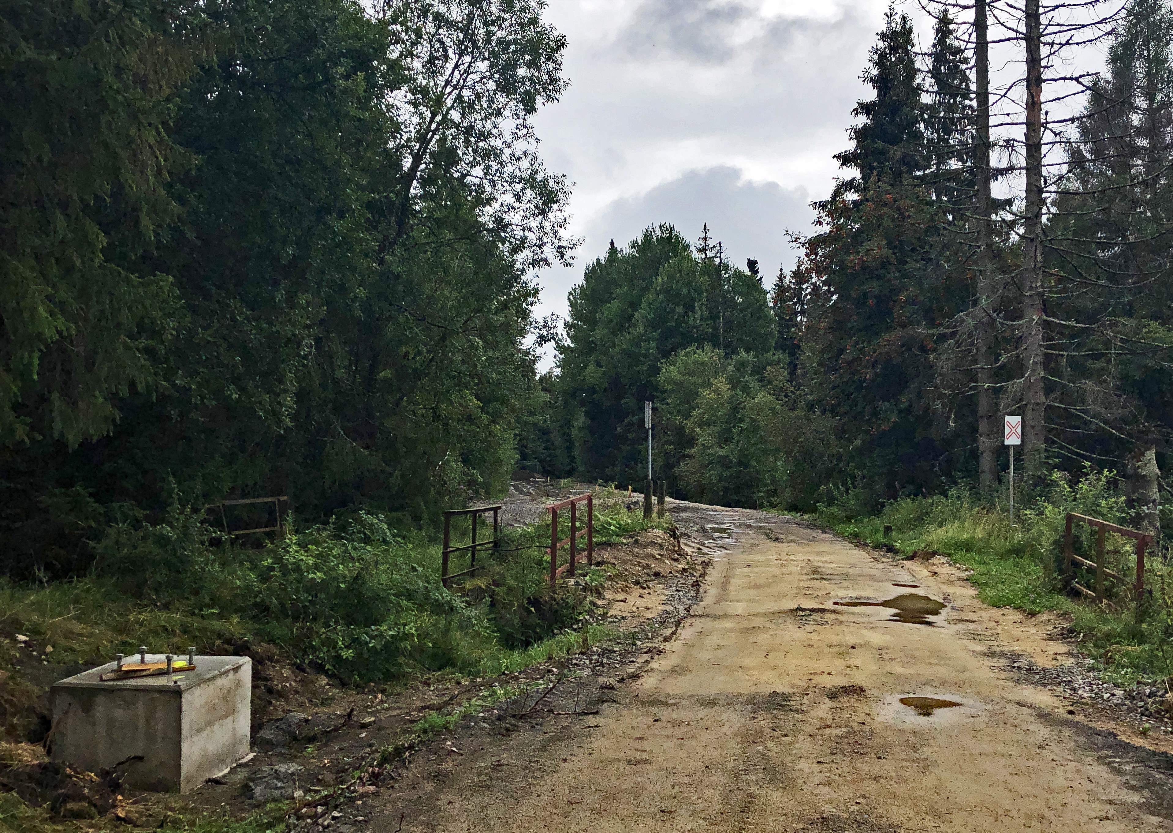 Ziemlich exakt an derselben Stelle entstanden die Fotos 2017 mit Triebwagen und 2020 ohne Gleis. Damit die Bau-Lkw nicht einsinken können, wurde eine spezielle Kiesschicht aufgetragen.