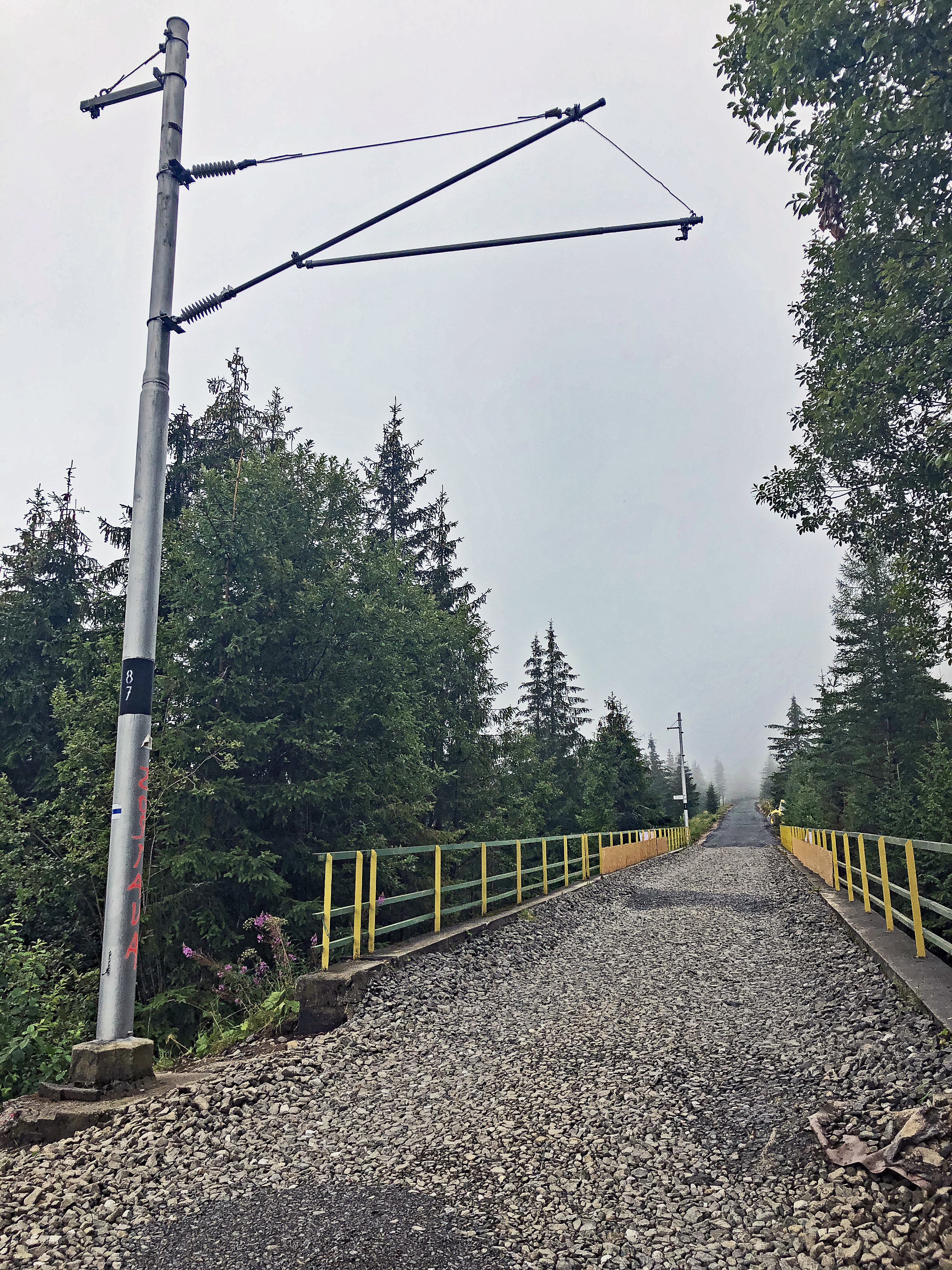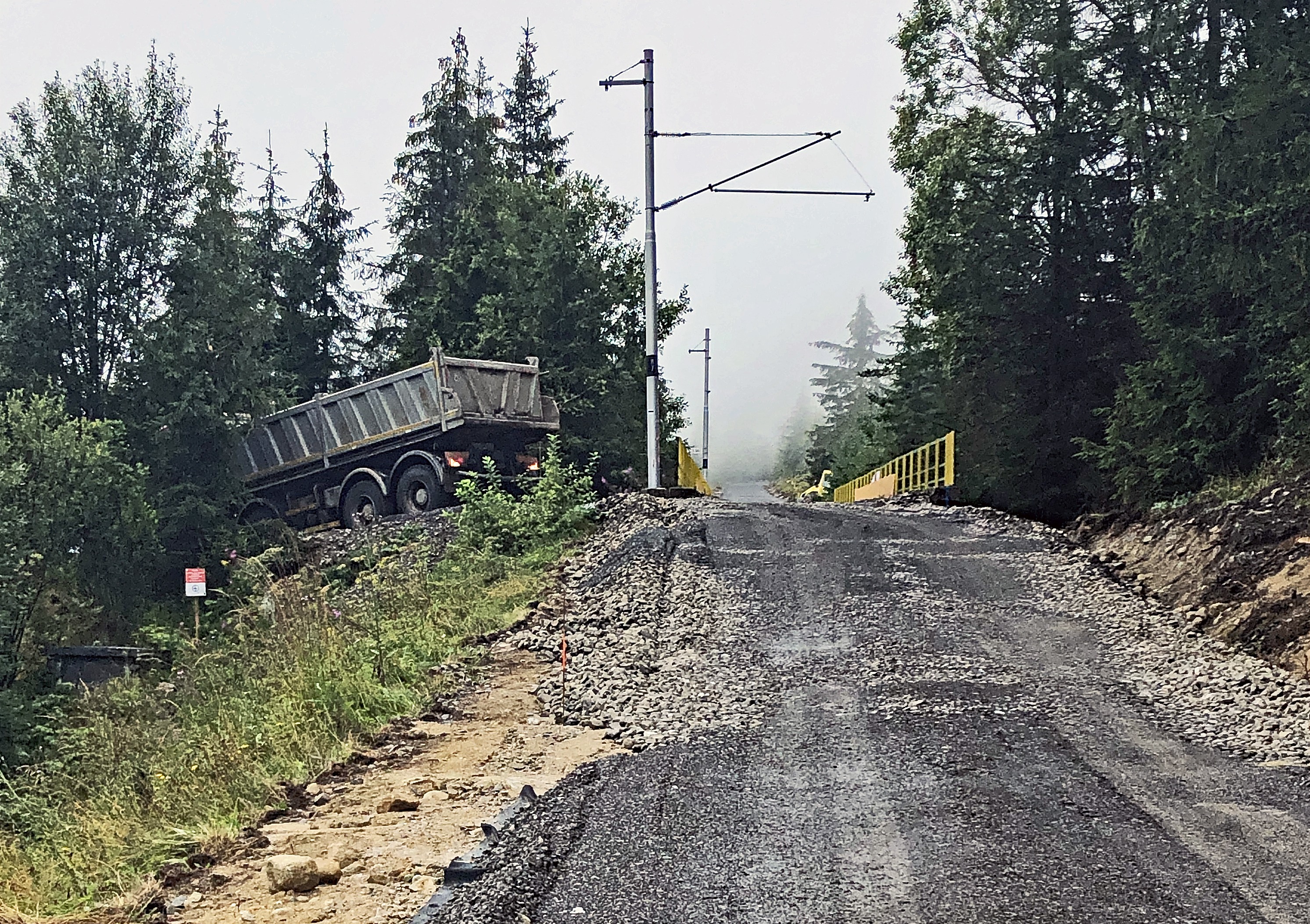 Auf der Strecke der Zahnradbahn Štrba-Štrbské Pleso stehen teilweise noch die alten Fahrleitungs-Masten, die auf der Achenseebahn noch lange gute Dienste hätten machen können, teilweise wurden bereits die Mastfundamente für die neuen Oberleitungsmasten betoniert.
