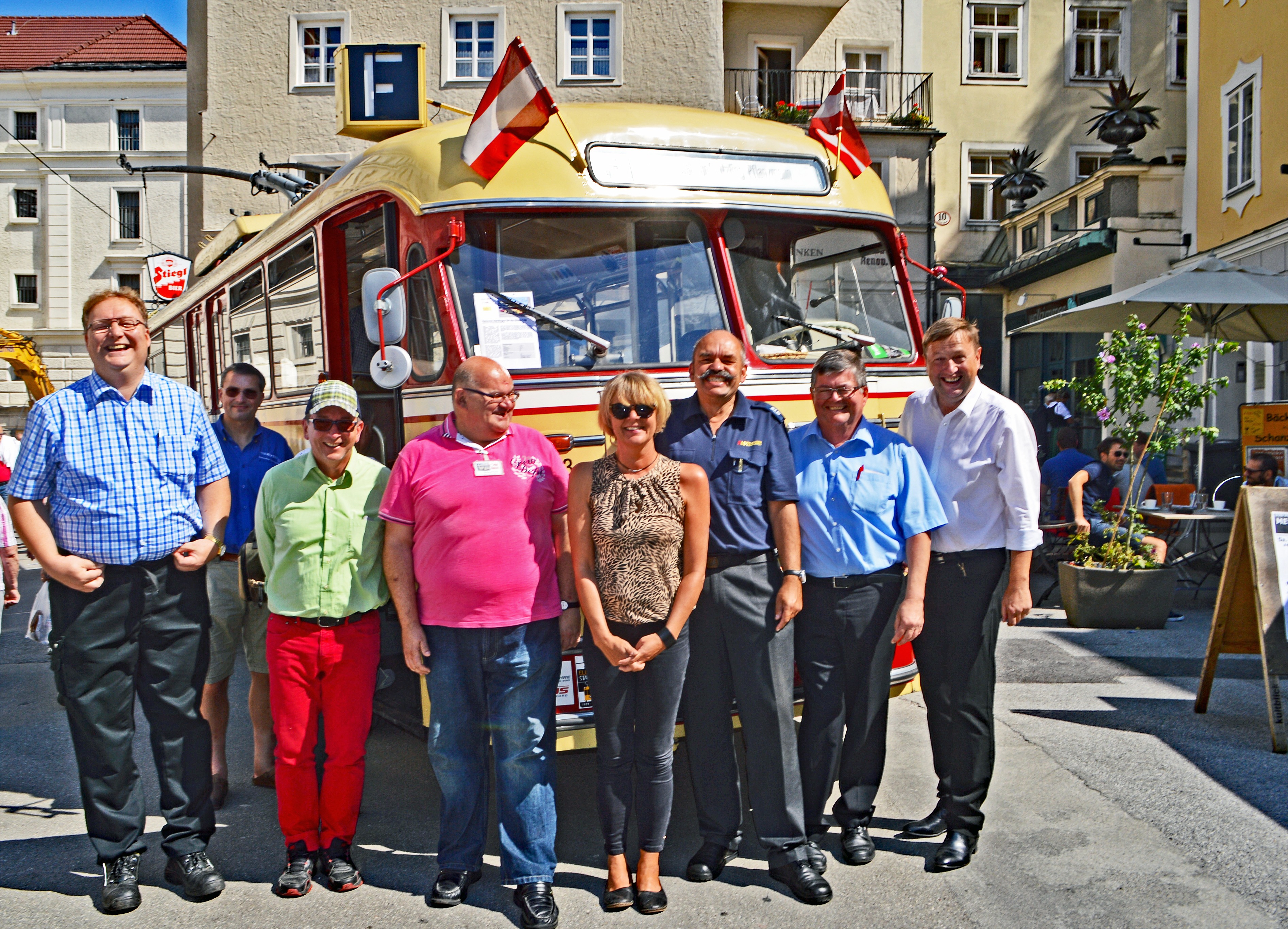 Während die historischen Fahrzeuge der "Roten Elektrischen" von der Salzburger Lokalbahn unter Denkmalschutz und damit unter besonderer Beobachtung des Bundesdenkmalamtes stehen, wird durch persönlichem Einsatz der Mitglieder des Vereines "Pro Obus" der historische Wagenpark liebevoll gepflegt. Obwohl dieser Verein die Salzburg AG vor einer schrecklichen Blamage bewahrt hat, wird der Verein aus der Remise Alpenstraße hinausgeschmissen! Im Bild eine Fahrzeugschau 2015 auf dem Kajetanerplatz mit Obus 123!