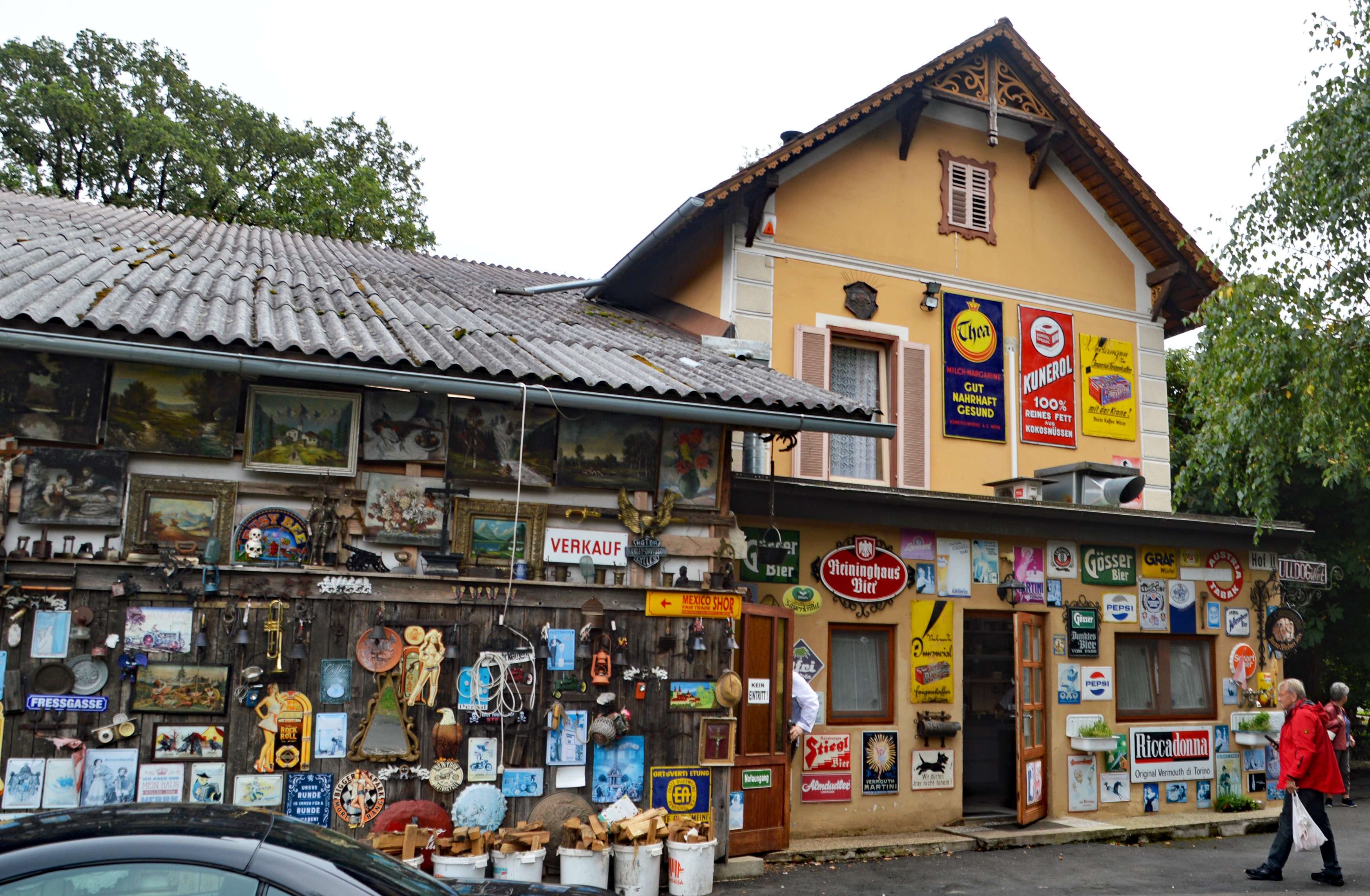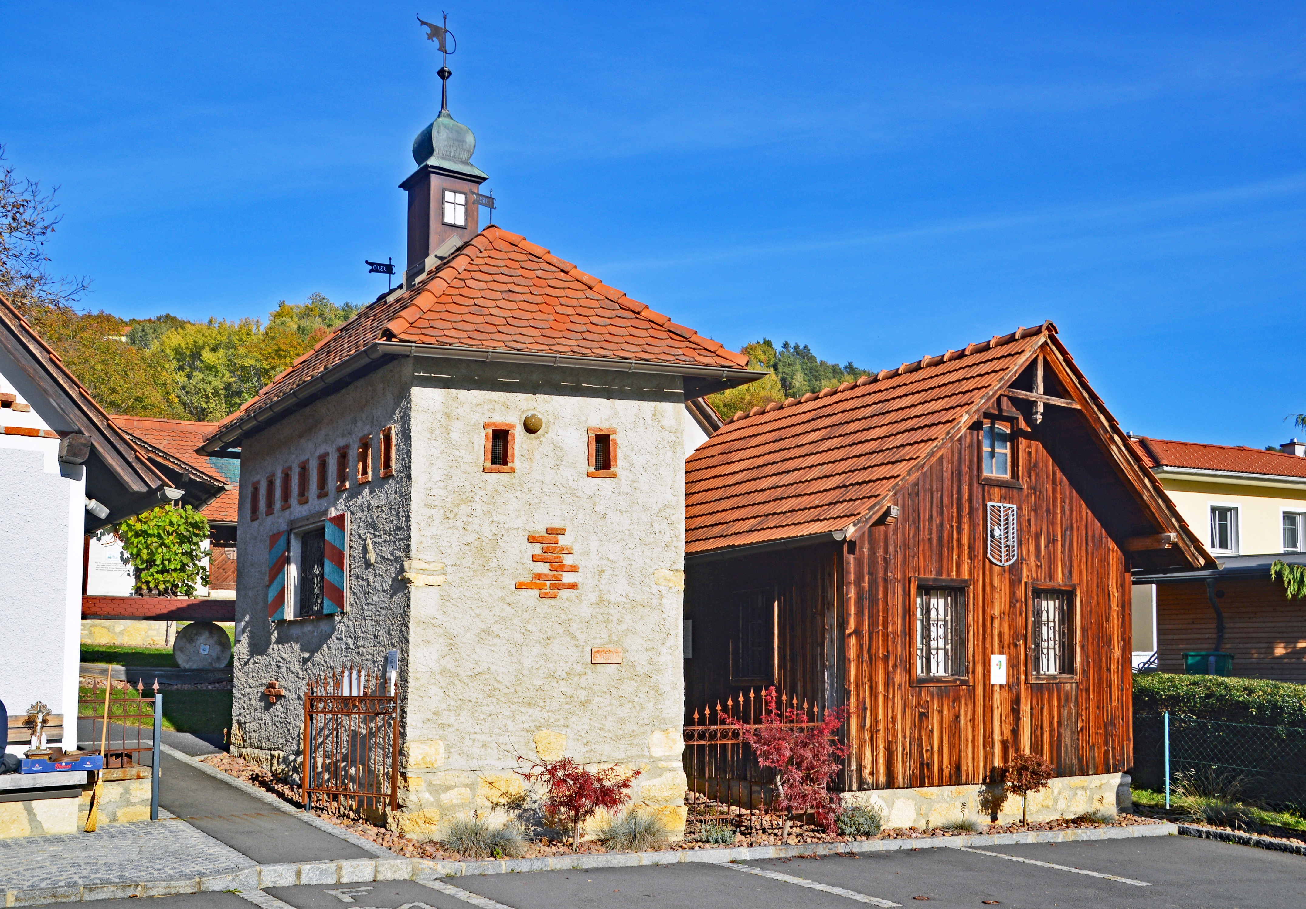 Links: Hexenturm Maßstab 1:5 und die Offiziersbaracke des Kriegsgefangenenlagers Feldbach-Mühldorf Mitte: Straden Silhouette Rechts: Bulldog-Museum
