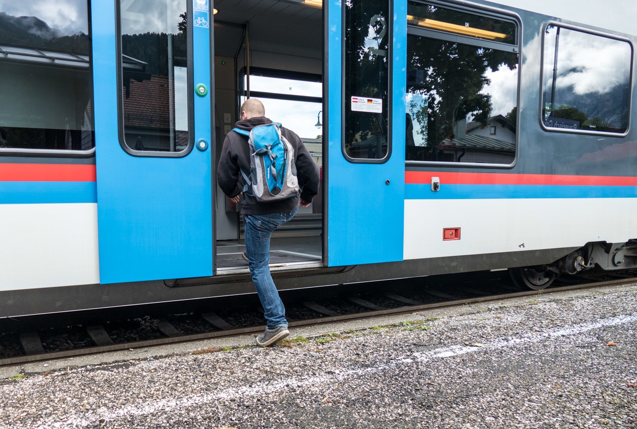 Völlig unzureichende Bahnsteighöhe in Bayerisch Gmain.
