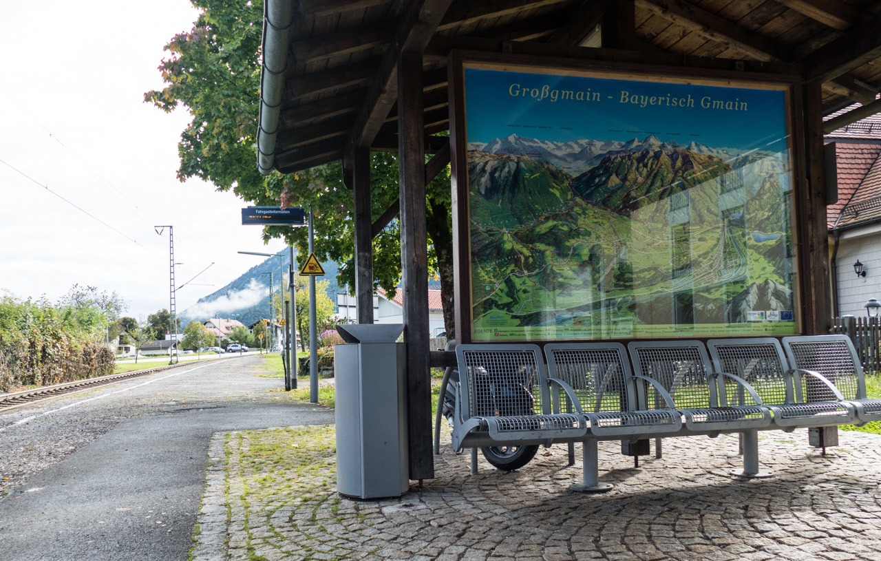 Fahrgastinformation am Haltepunkt Bayerisch Gmain bei Schienenersatzverkehr - weite Wege.
