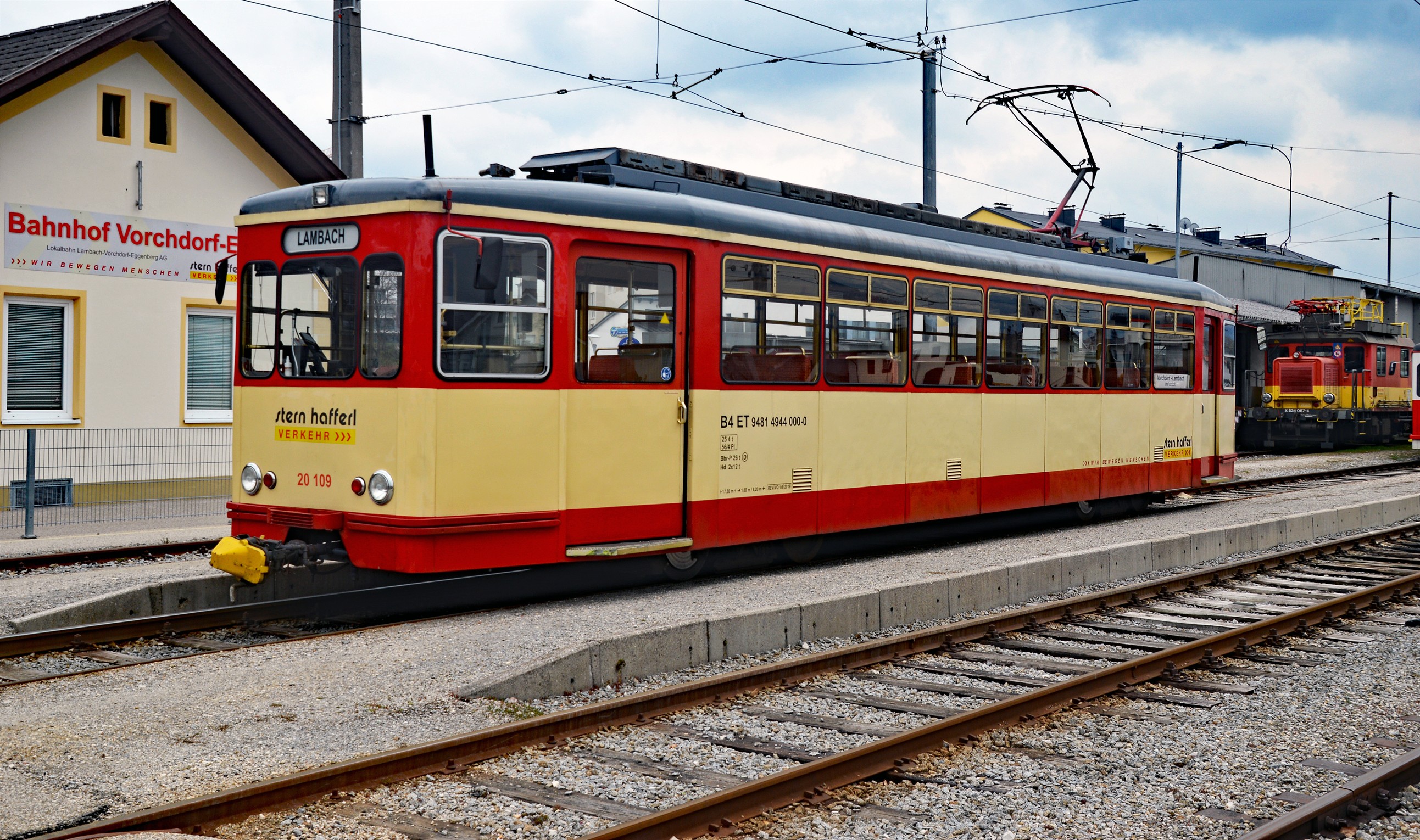 LVE Lokalbahn Lambach - Vorchdorf-Eggenberg Normalspurbahn Triebwagen, Bahnbetriebswerk Vorchdorf, ex Extertaler ex SLB ET21, Kölner-Triebwagen LVE Lokalbahn Lambach - Vorchdorf-Eggenberg Normalspurbahn Triebwagen, Bahnbetriebswerk Vorchdorf, Kölner-Triebwagen im Bahnhof Vorchdorf-Eggenberg LVE Lokalbahn Lambach - Vorchdorf-Eggenberg Normalspurbahn Triebwagen, Bahnbetriebswerk Vorchdorf, ex Extertaler ex SLB ET21, Bahnhof-Vorchdorf/Eggenberg hinten StH-Turmtriebwagen
