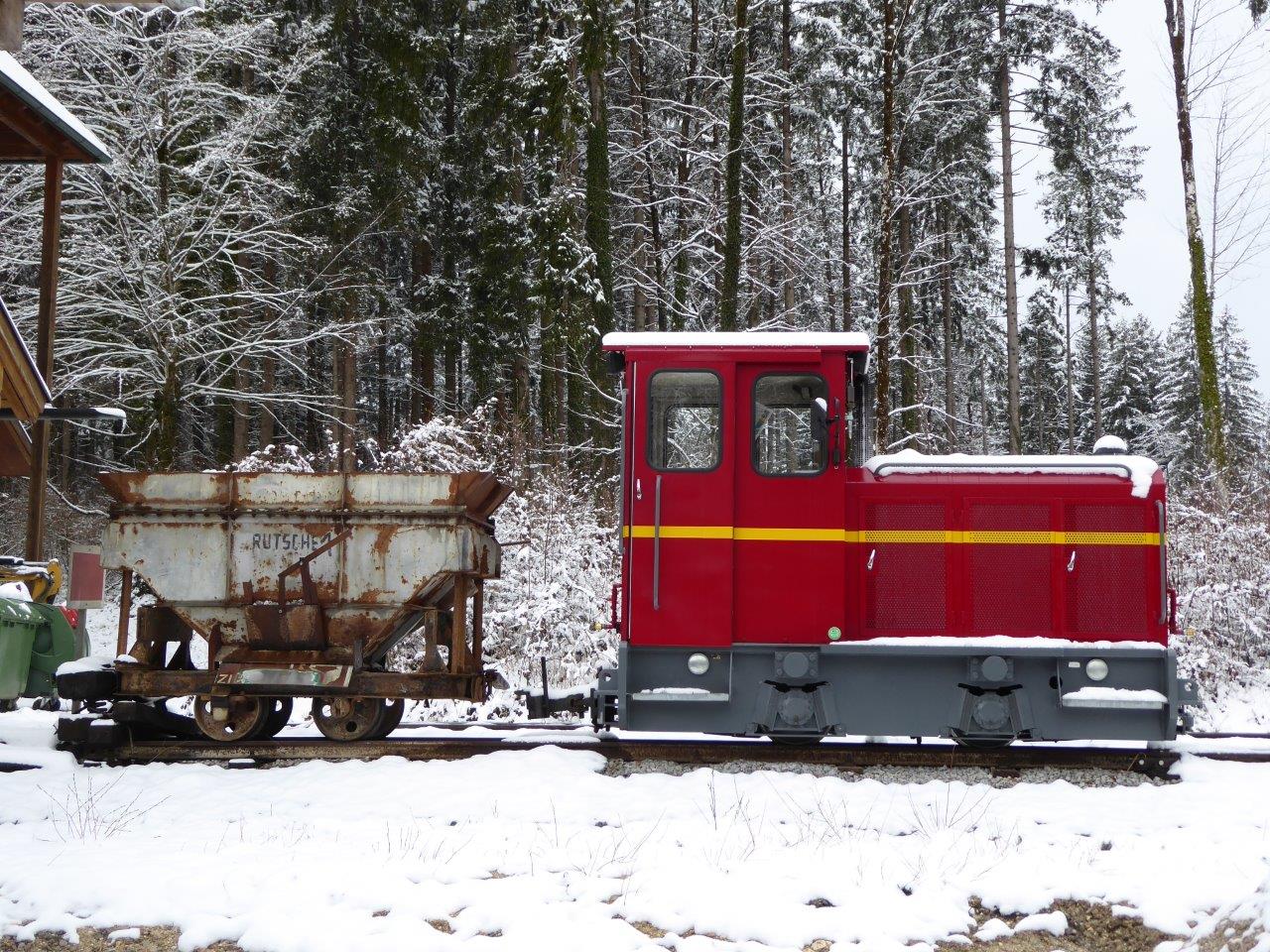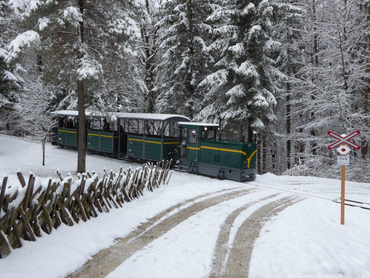 Die 600mm Schmalspurbahn im Salzburger Freilichtmuseum Großgmain – sie geht übrigens heuer bereits in die 12.Saison – ist nur selten mit durchgehender Schneedecke zu bewundern.