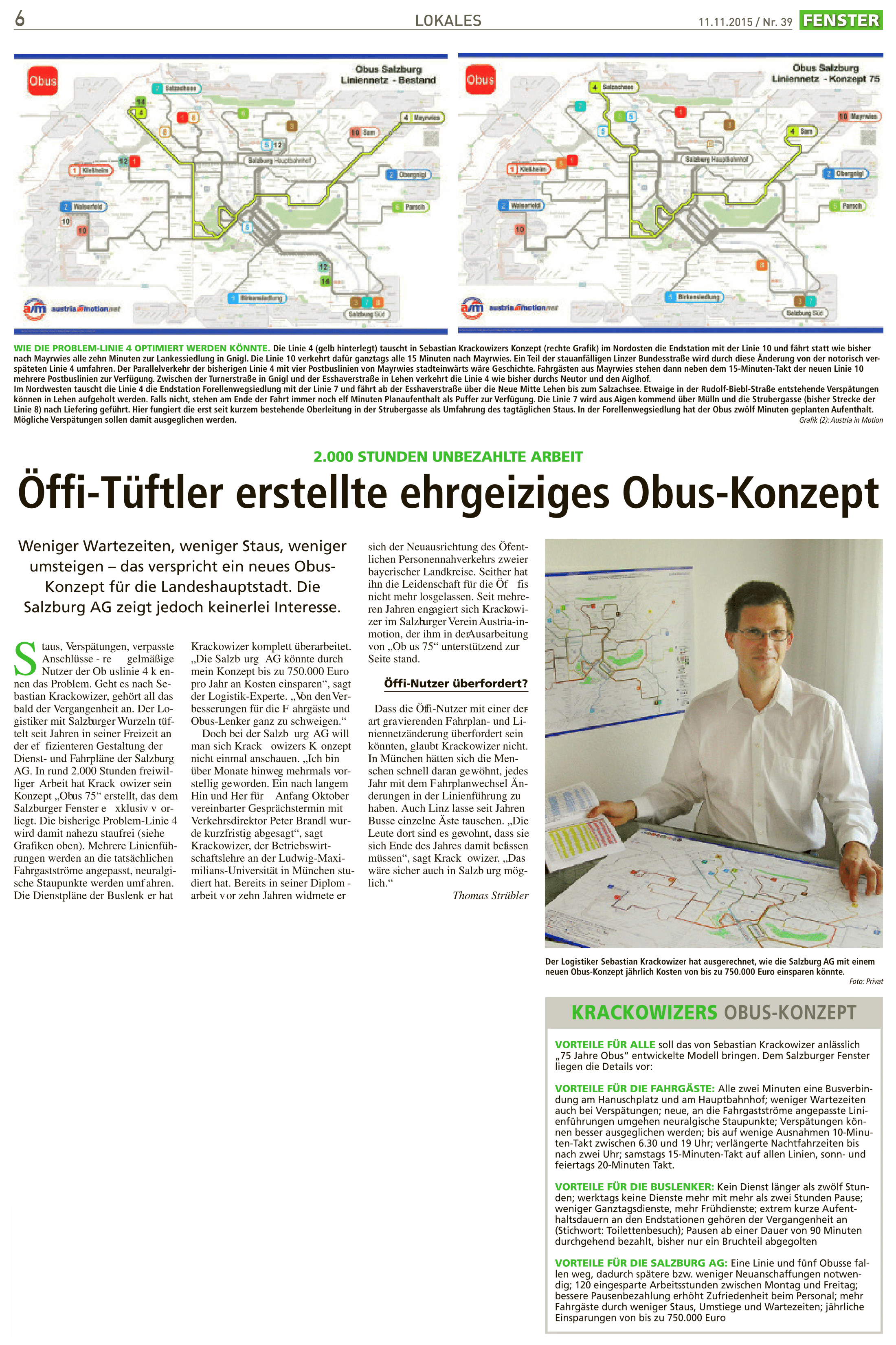 Politik lebt von der Diskussion, auch mit den Bürgern. Nicht nur vor der Wahl, sondern auch danach und fortlaufend. Wenn sich Stadt und Land die Experten im Ausland suchen (müssen), dann liegt die Vermutung nahe, dass man in die eigenen Stellen und zuständigen Personen und Institutionen kein Vertrauen hat. Ein Armutszeugnis, wenn man die eigenen Probleme nicht selbst lösen kann (oder will). Da Sebastian Krackowizer seit vielen Jahren versucht, die politischen Parteien und die Salzburg AG für ein kostengünstigeres Obus- und Albusnetz zu begeistern, das zugleich den Fahrgästen bessere Fahrpläne und den Busfahrern bessere Arbeitsbedingungen ermöglichen würde, war die Verwunderung bei vielen groß, als in der Pressekonferenz der Vizebürgermeisterin davon gesprochen wurde, es gäbe überhaupt kein Gesamtkonzept.