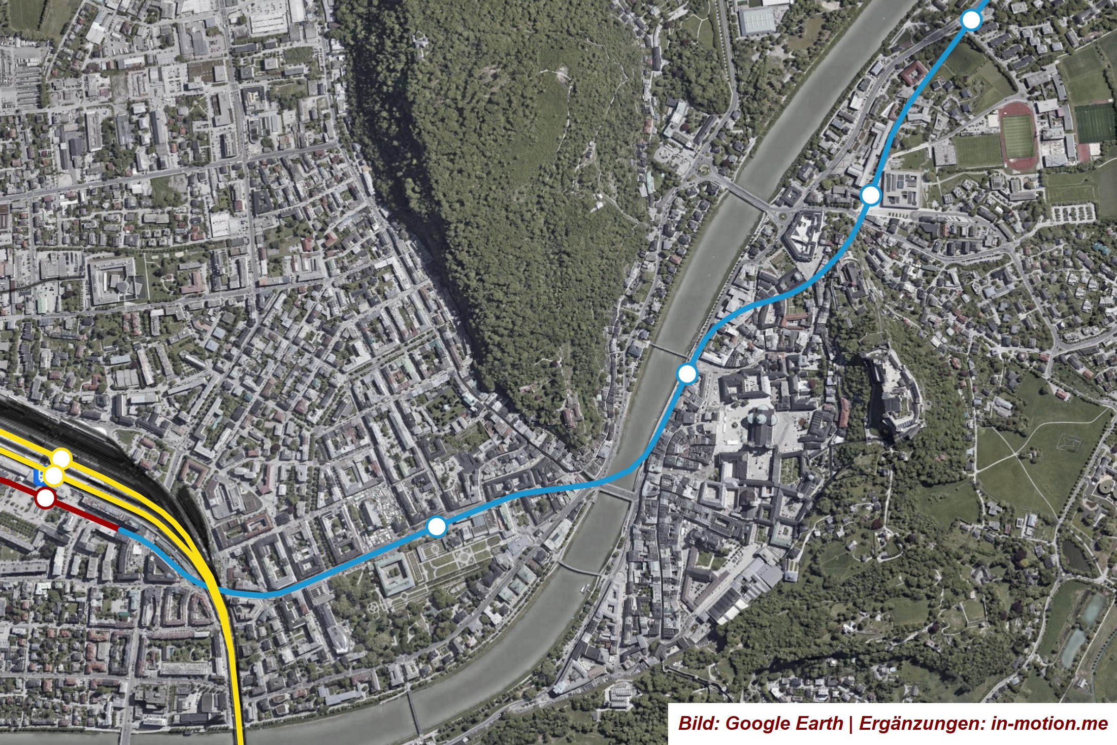 Von den infrage kommenden Varianten wurden insgesamt sechs oberirdische geprüft, darunter als Variante 191 jene oberirdische Linienführung aus der „ERB-Studie“. Dabei hat sich auch wieder gezeigt, dass die oberirdische Führung im Stadtgebiet zwischen Lokalbahnhof und Akademiestraße massiv negative Auswirkungen auf die Stadt und auf alle Verkehrsteilnehmer inklusive öffentlichem Verkehr, Radfahrern und Fußgängern hätte und zudem kaum Potential bietet, die Lebensqualität in der Stadt Salzburg nachhaltig zu verbessern. Die Nachteile der oberirdischen Variante wurden dabei leider definitiv als zu gravierend eingestuft, zudem kann die notwendige Leistungsfähigkeit nicht erreicht werden. Die „ERB-Studie“ empfahl zudem als bestbewertete Variante die Führung einer Trasse unterirdisch durch die Innenstadt.