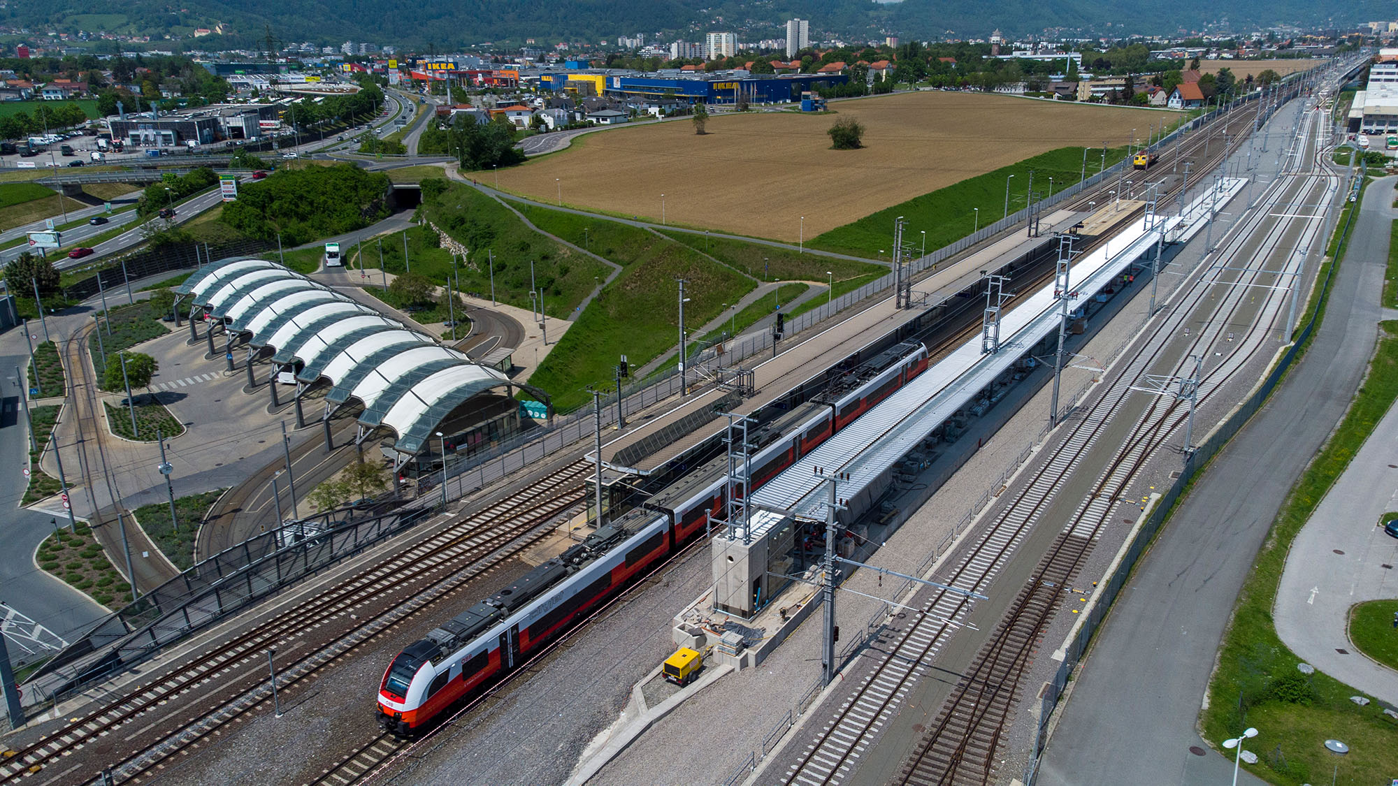 45 Minuten von Graz nach Klagenfurt – die Koralmbahn macht´s möglich. Der viergleisige Ausbau zwischen Graz und Feldkirchen ist ein wichtiger Teil davon. Im Zuge dessen wurde auch der Bahnhof Puntigam adaptiert. © ÖBB/Chris Zenz