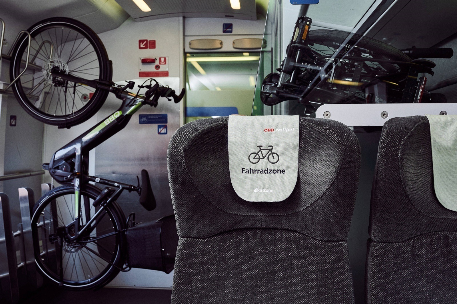 In allen ÖBB Railjets gibt es ab sofort eine Fahrradzone. In unmittelbarer Nähe zu den Fahrradstellplätzen, auf denen bis zu sieben Fahrräder Platz finden, sind nun acht Sitzplätze mit einem Fahrradsymbol gekennzeichnet. Die Fahrradzone ist bei der Sitzplatzreservierung im ÖBB Ticketshop eingezeichnet, so können Fahrgäste ganz einfach einen Sitzplatz in der Nähe ihres Fahrrads reservieren.