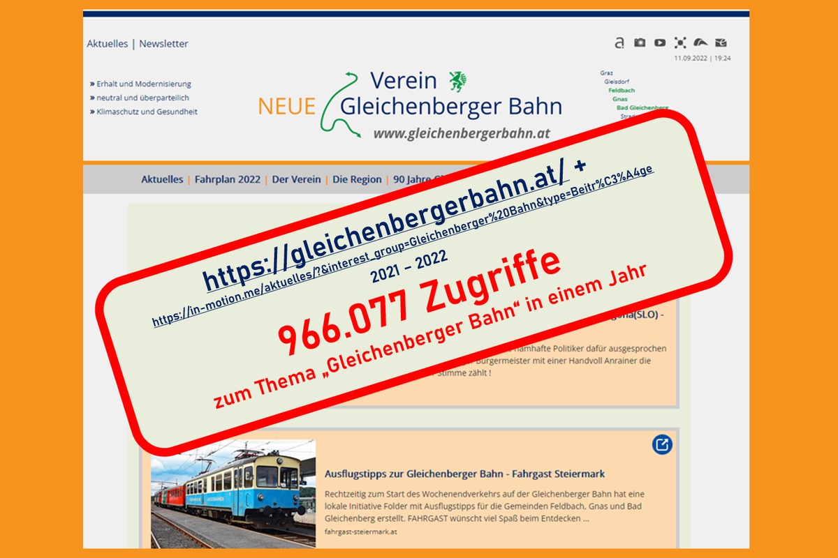 Zugriffe auf den Websites Gleichenberger Bahn 966.077 User