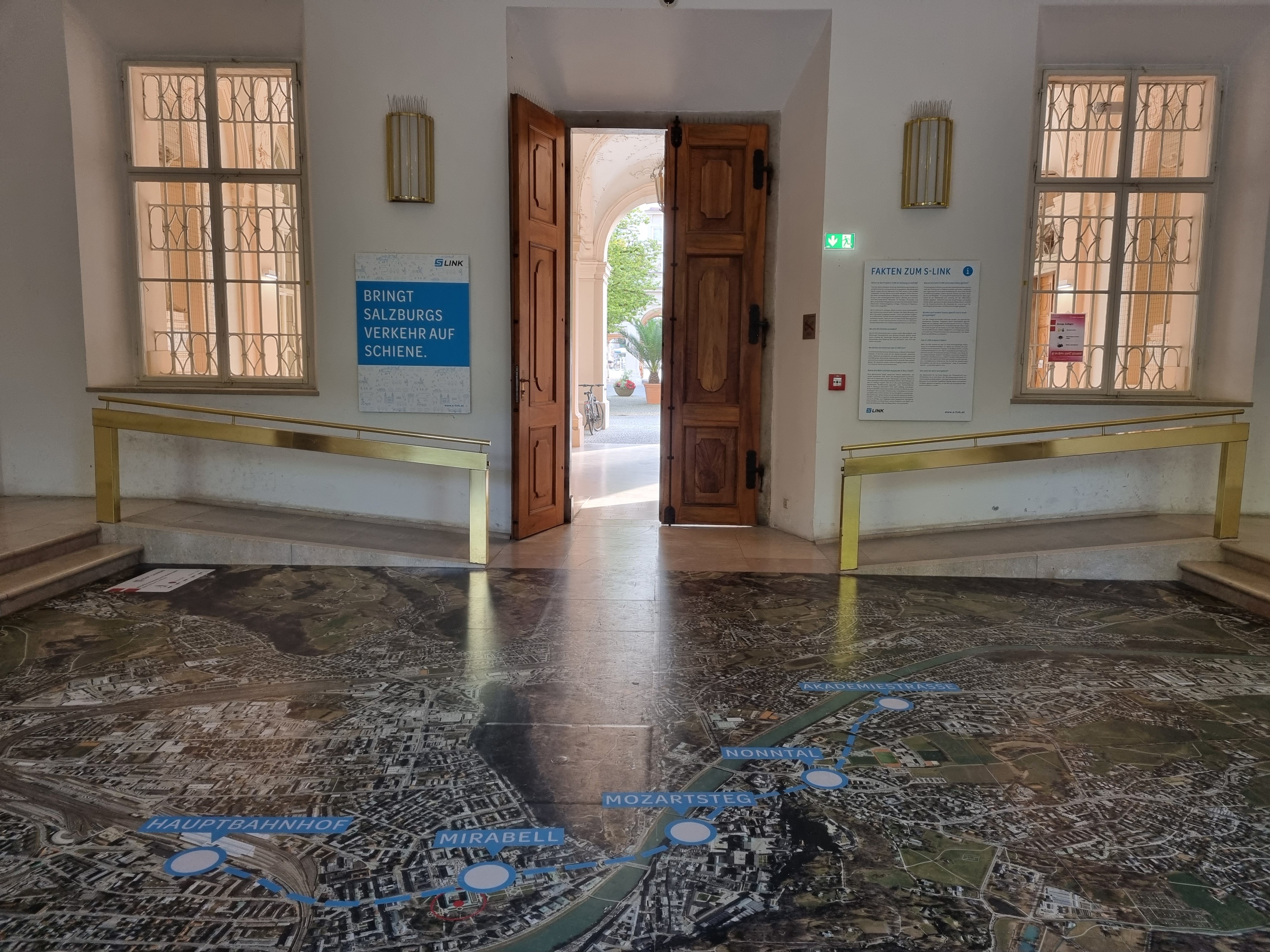 Nur noch für kurze Zeit ist im Schloss Mirabell in der Wolf-Dietrich-Halle eine Ausstellung rund um das Nahverkehrsprojekt S-LINK zu finden.