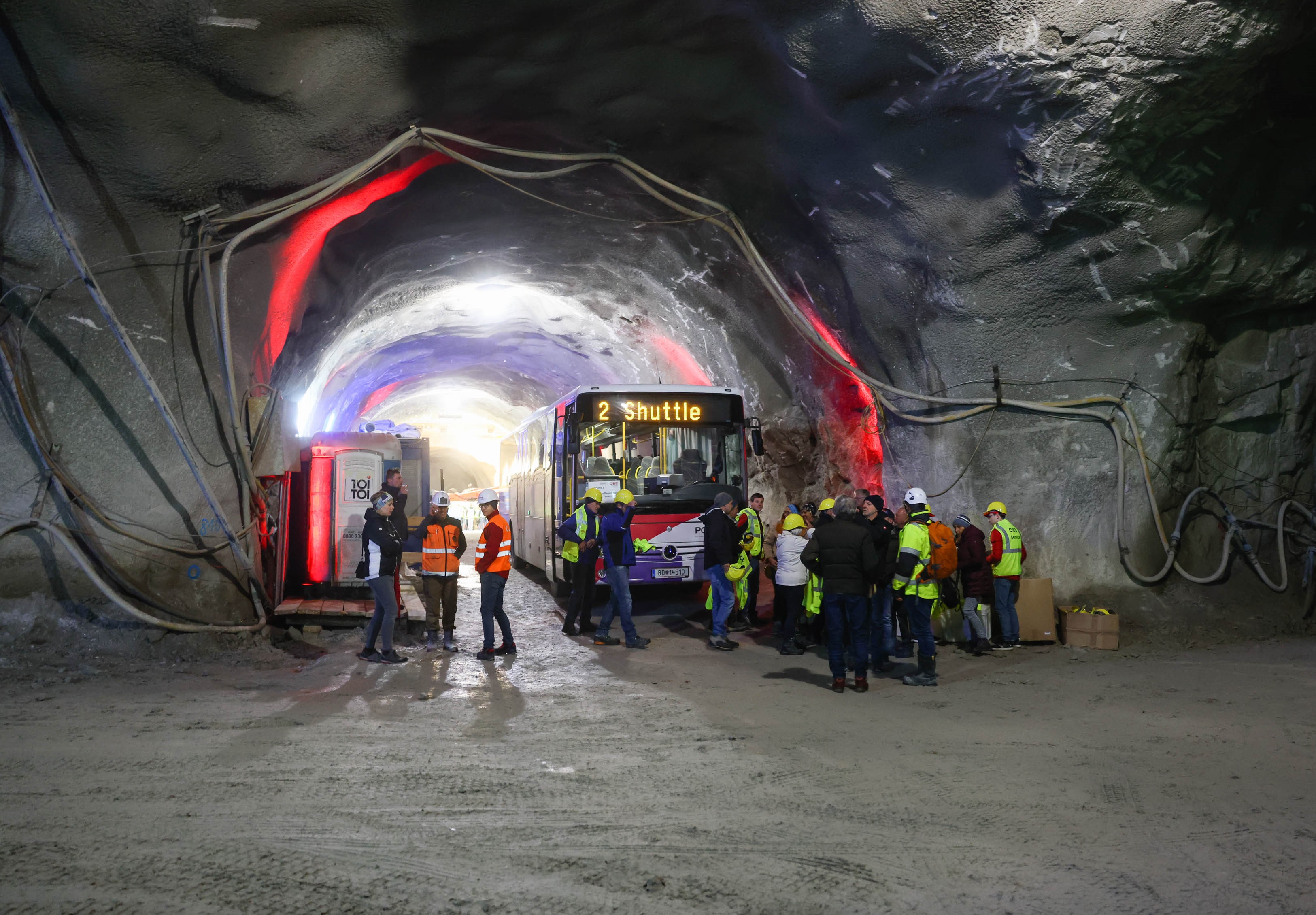 Das Highlight des Events waren die Tunnelführungen, die auch eine Besichtigung der unterirdischen Kaverne und der Staumauer umfassten. Besonders beeindruckten die Dimensionen der Kaverne, in der künftig die beiden Maschinensätze ihre Arbeit leisten werden. Christian Höss, ÖBB-Projektleiter: „Mit einer Höhe von 40 Meter hätte in der Kaverne ein zwölfstöckiges Gebäude Platz. Künftig werden durch die beiden Maschinensätze bis zu 80.000 Liter Wasser pro Sekunde fließen und bedarfsgerecht grünen Strom erzeugen. Mit dem Tag der offenen Baustelle haben wir Anrainer:innen und Interessierte eingeladen, sich vor Ort ein Bild von den Arbeiten beim neuen Kraftwerk zu machen."