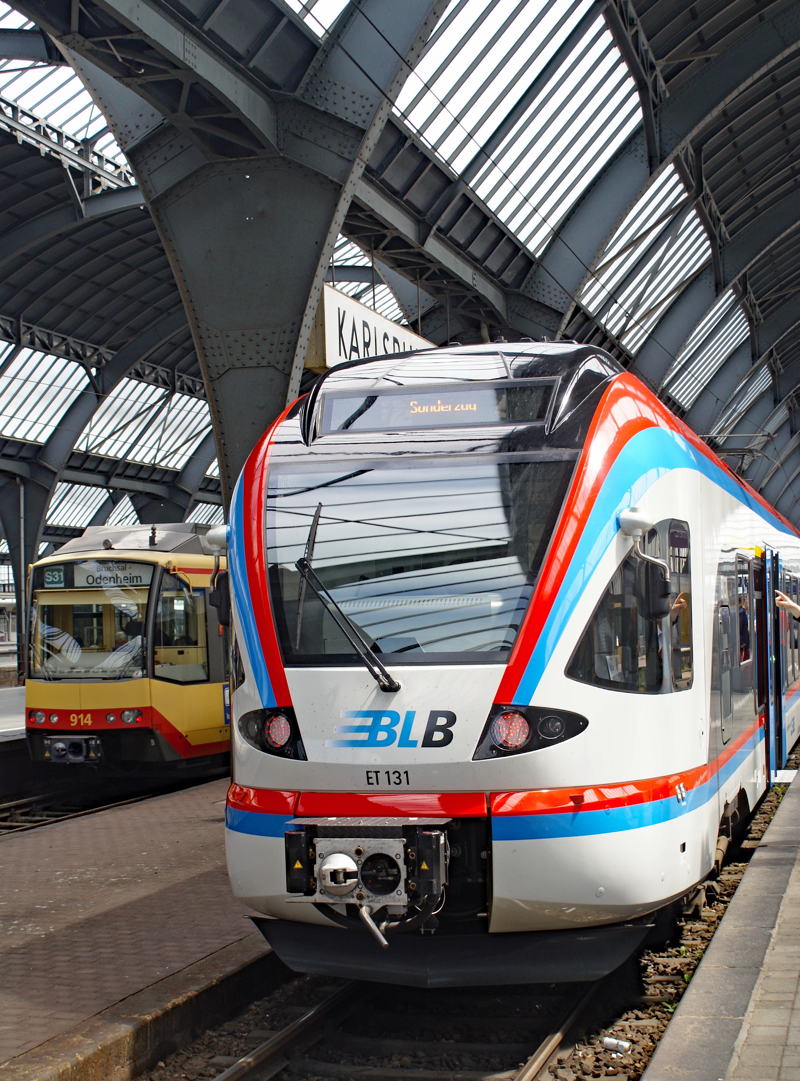 ET 131 der Berchtesgadener Land Bahn als Sonderzug in Karlsruhe Hauptbahnhof.