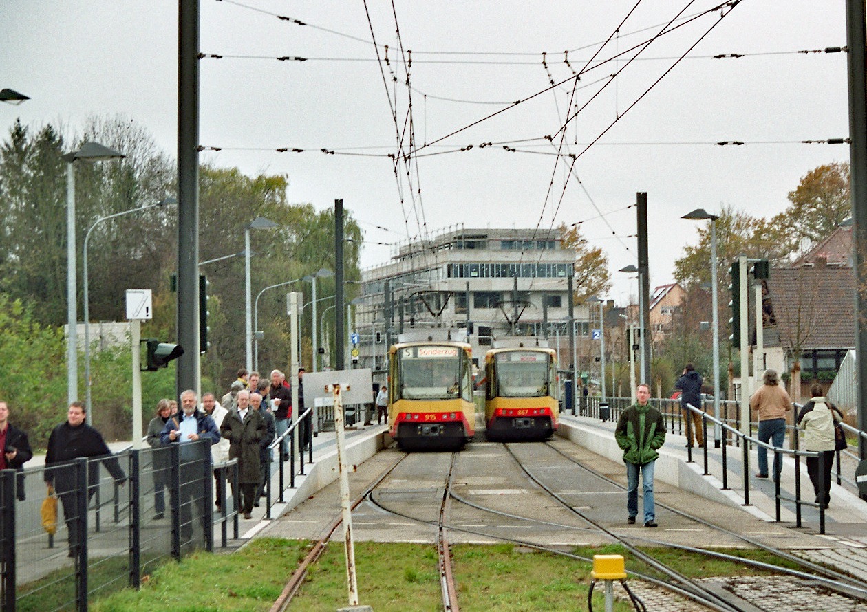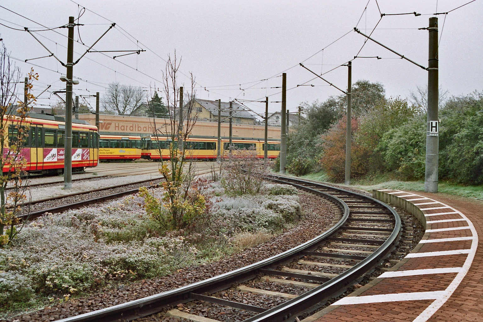 Endstation Wolfartsweier Nord mit Zweisystem-Stadtbahn-Triebwagen ET 915.