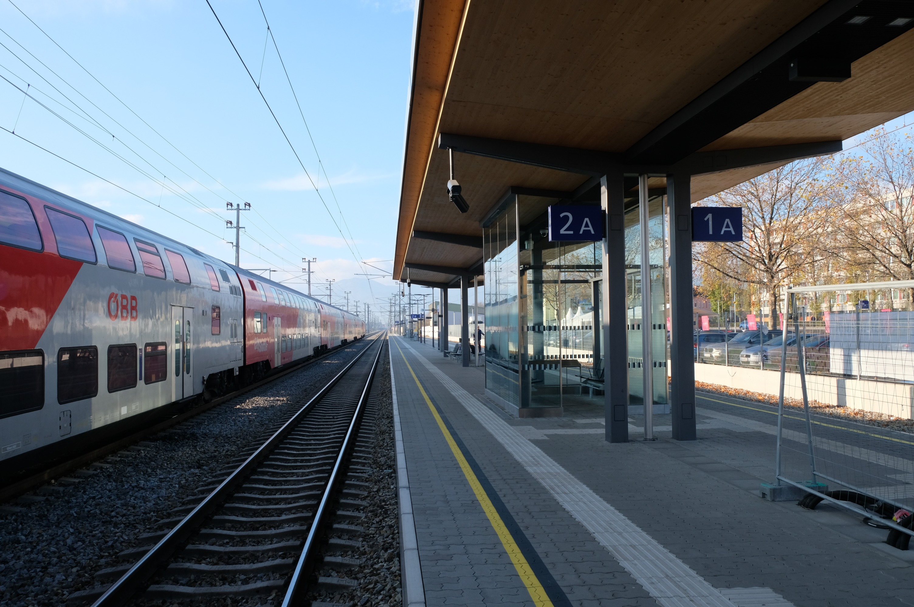 - Errichtung zweier neuer Inselbahnsteige inkl. gesamter Bahnsteigausstattung (Sitzgelegenheiten, Beschilderungen etc.) und Glas-Wartekojen