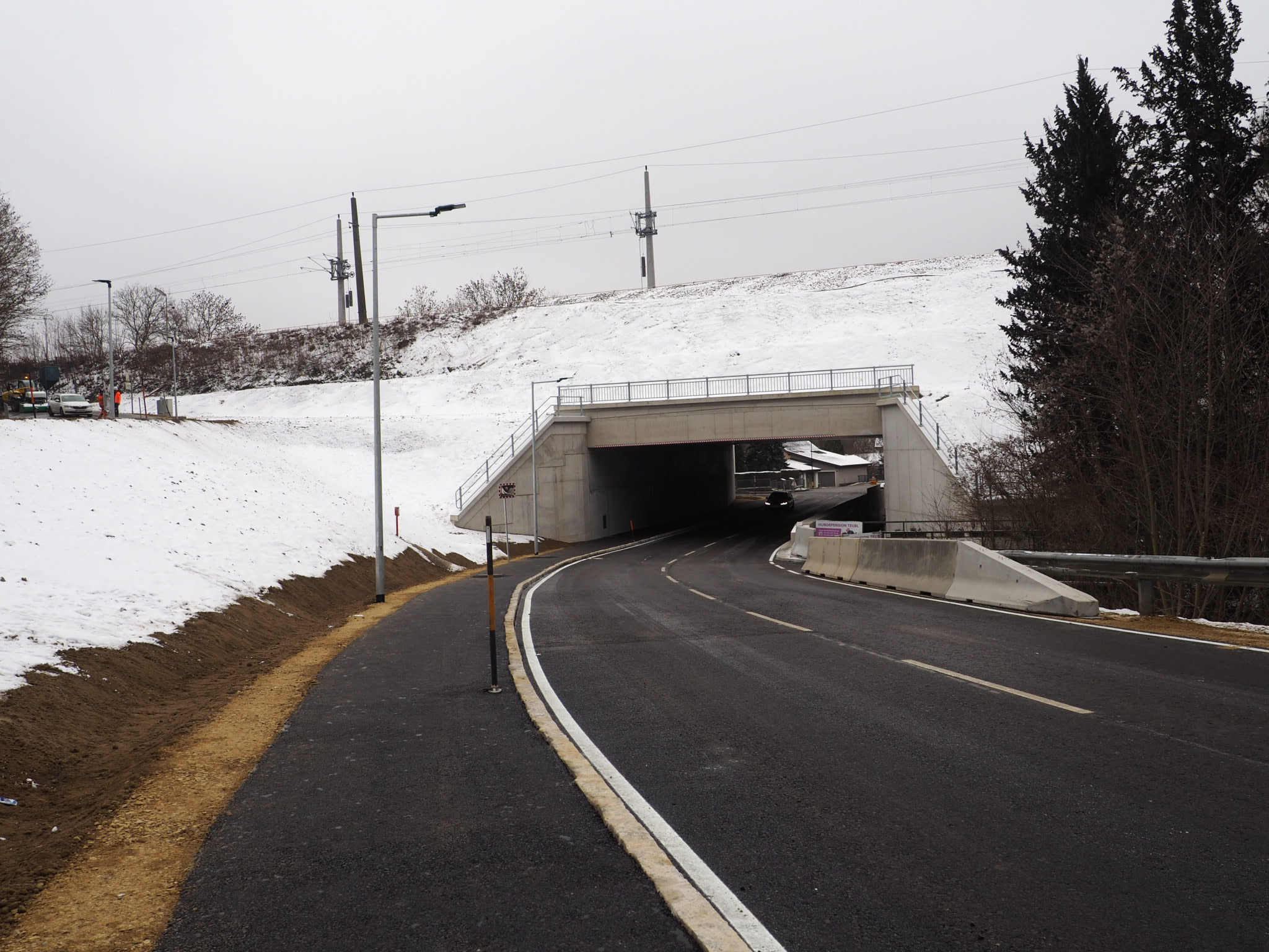 Die Geduld der Anrainer:innen hat sich ausgezahlt: Mit Donnerstag, 22.12.2022 konnte die neue Unterführung der L123 im Bereich der Weidlingbachstraße und die neue Einbindung der Egererstraße im Tullnerbacher Ortsteil Lawies für den Straßenverkehr freigegeben werden. © ÖBB, Irene Veitsmeier