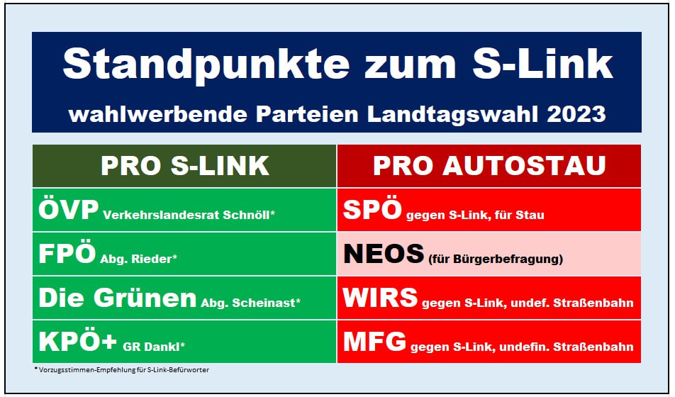 Wenn die Verkehrspolitik wahlentscheidend bei der Landtagswahl sein sollte, sei diese Liste als Empfehlung vorgeschlagen und die Mandatare für Vorzugsstimmen zu empfehlen.