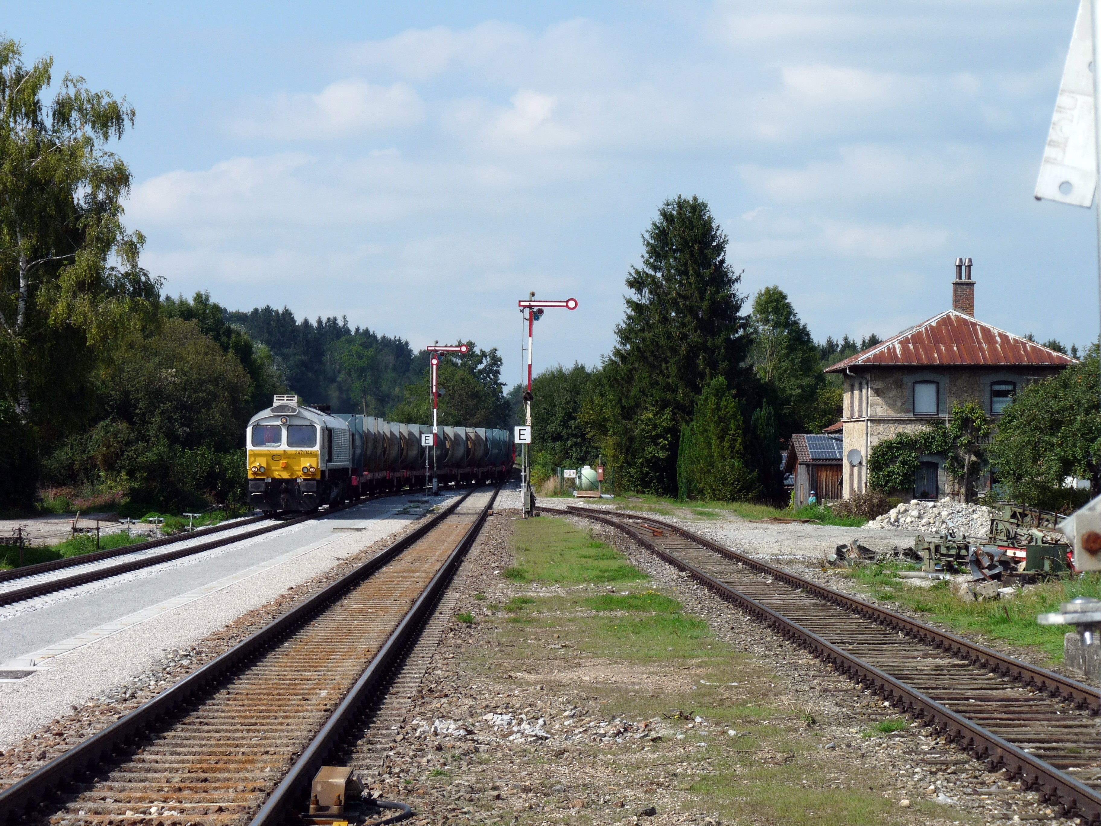 Bahnhof Tittmoning-Wiesmühl, Lok 247 044-1, Müllzug,