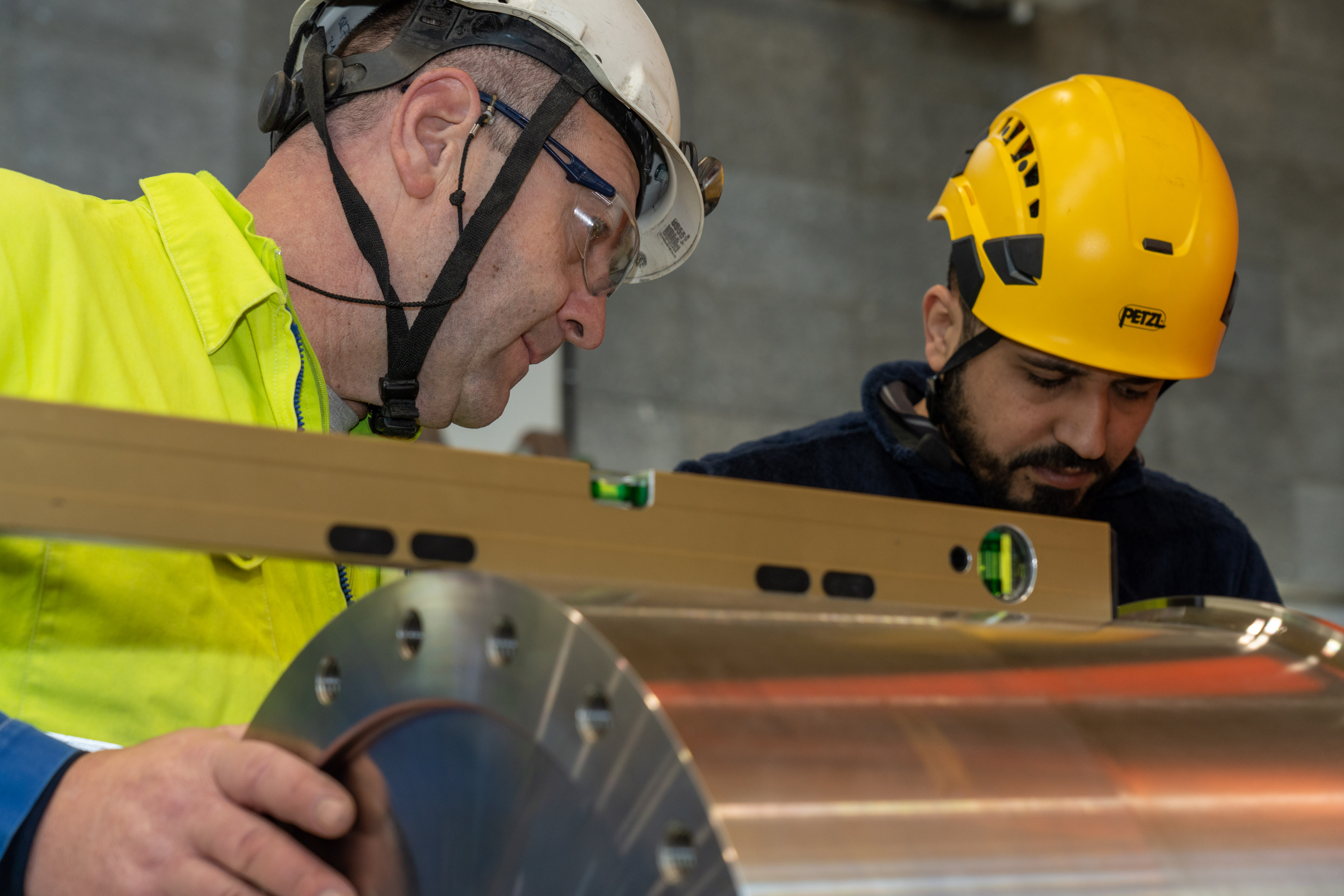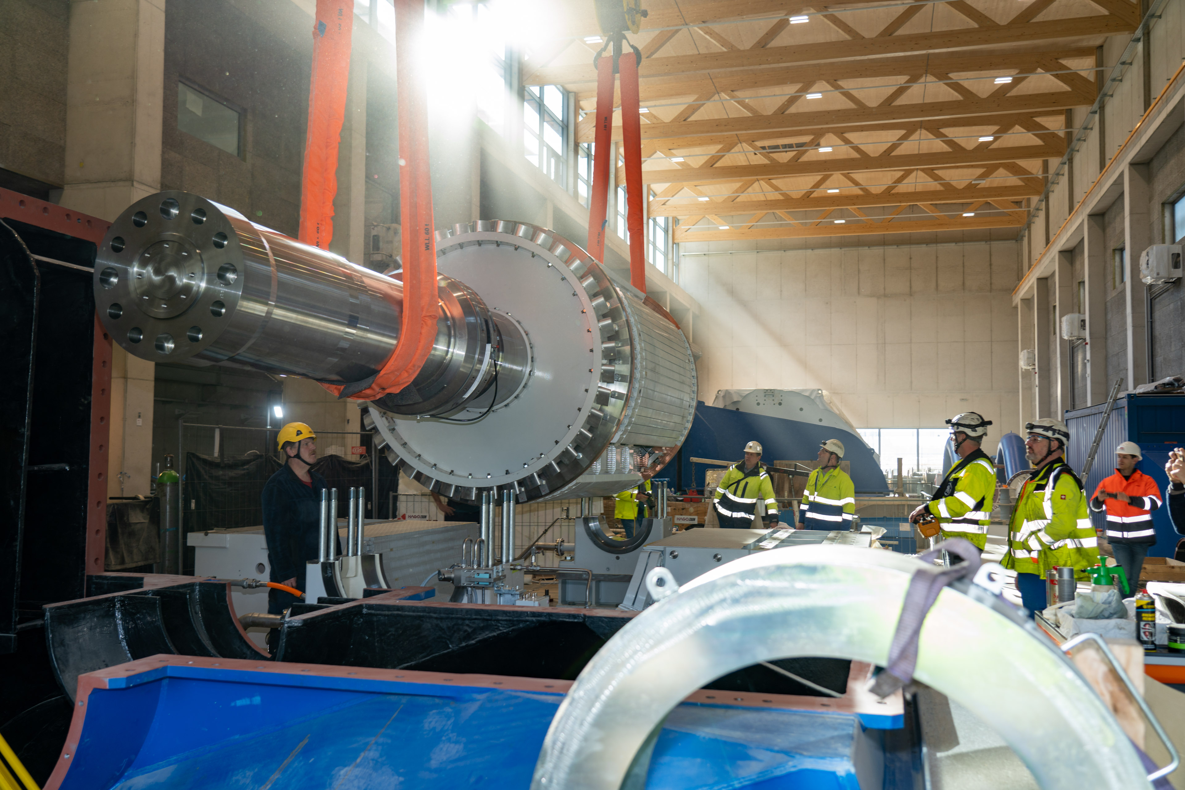 „Die Rotorwellen sind zentrale Elemente der beiden Maschinensätze. Die jeweils rund 85 Tonnen schweren Bauteile verbinden die Turbinen mit den Generatoren. Das Wasser treibt das 2,3 Meter große Pelton-Laufrad an, die Rotorwelle überträgt diese Bewegung schließlich auf den Generator," erklärt Ausrüstungskoordinator Christoph Sailer.