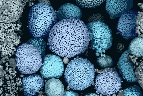 Im Rasterelektronenmikroskop zeigt sich die Ästhetik der Pyritkügelchen, die vor 11 Millionen Jahren von Schwefelbakterien erzeugt wurden. © Zhiyong Lin, Universität Hamburg