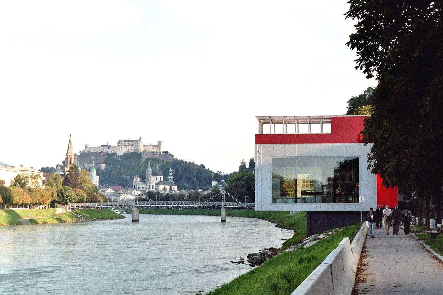 ÖBB-Info-Box S-Bahn Salzburg Mülln am Salzach-Kai für die Präsentation des Ausbaues des Drittes Gleises Richtung Freilassing