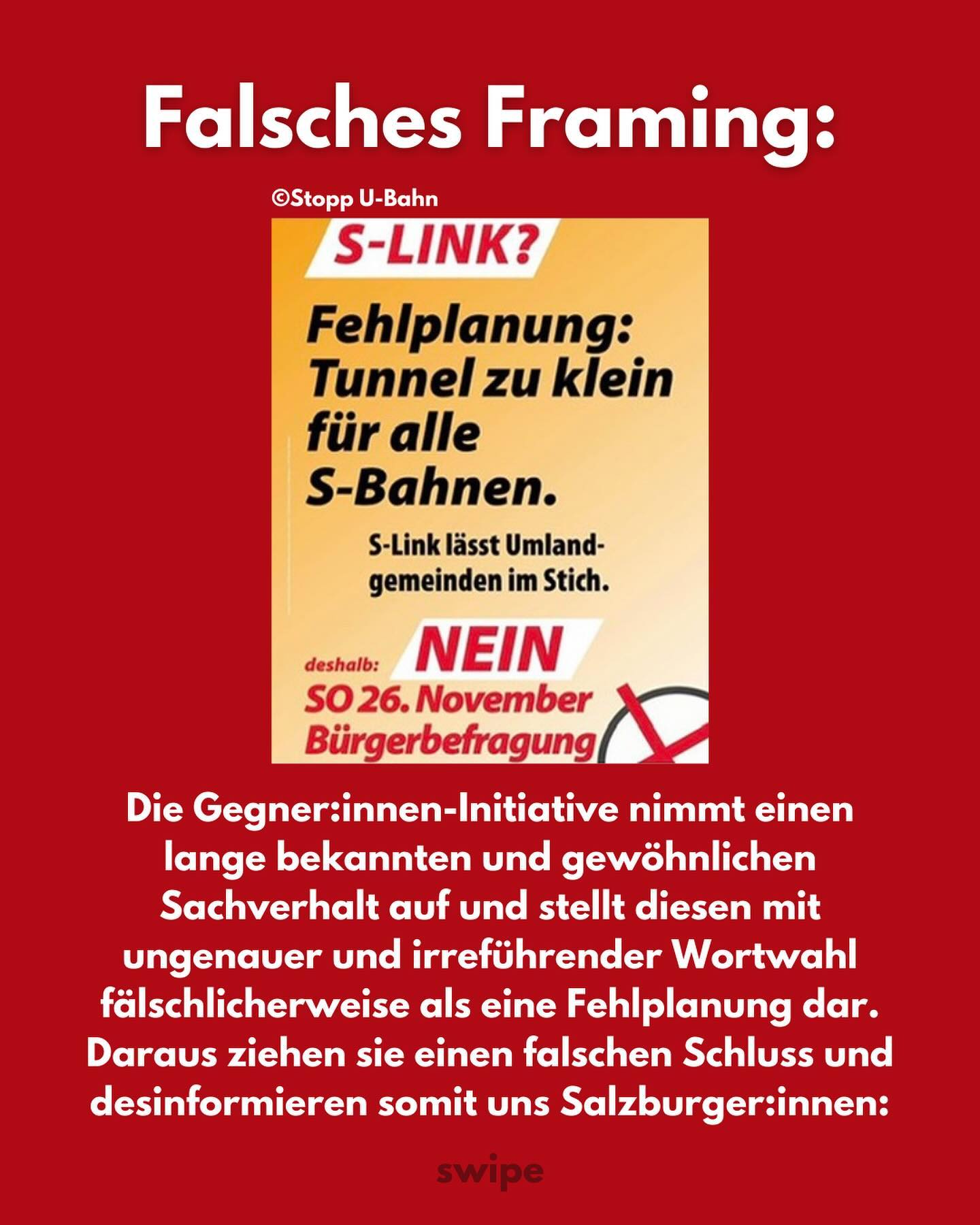 Falsches Framing: Die Gegner:innen-Initiative nimmt einen lange bekannten und gewöhnlichen Sachverhalt auf und stellt diesen mit ungenauer und irreführender Wortwahl fälschlicherweise als eine Fehlplanung dar. Daraus ziehen sie einen falschen Schluss und desinformieren somit uns Salzburger:innen: