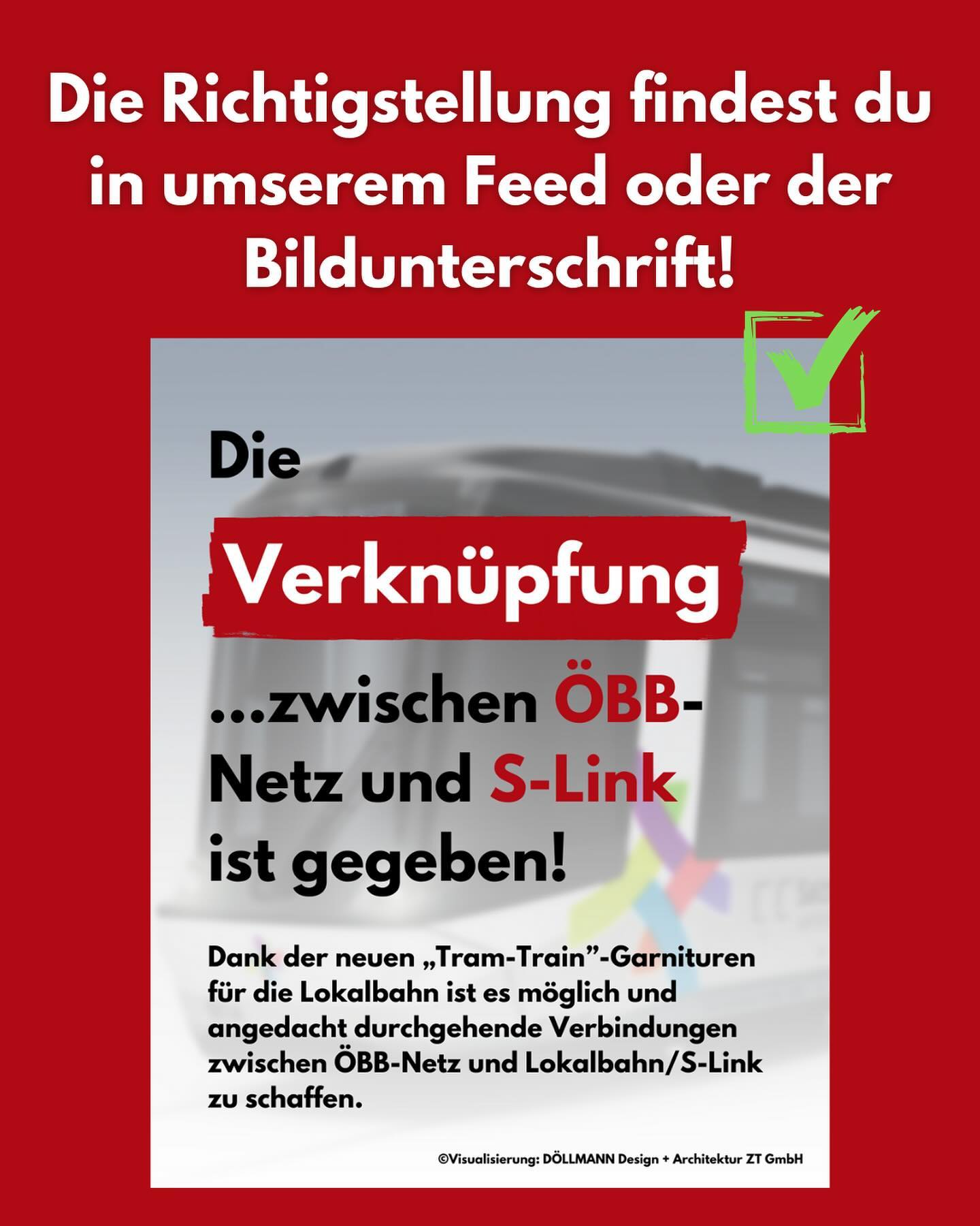 Richtigstellung: Die netzübergreifende Verknüpfung zwischen ÖBB-Netz und S-Link/Lokalbahn ist gegeben!
