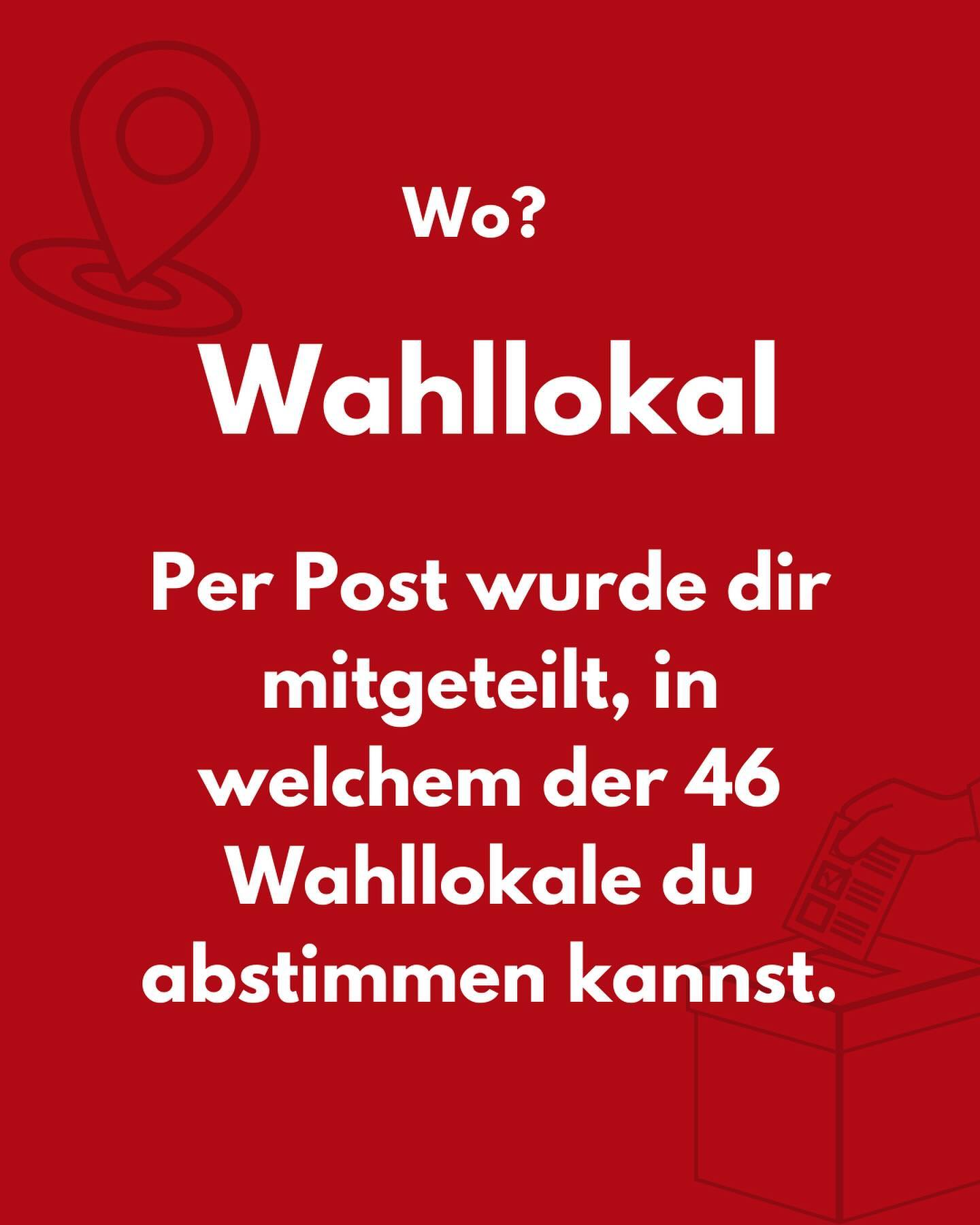 In deinem Wahllokal. Per Post wurde dir mitgeteilt, in welchem der 46 Wahllokale du abstimmen kannst.
