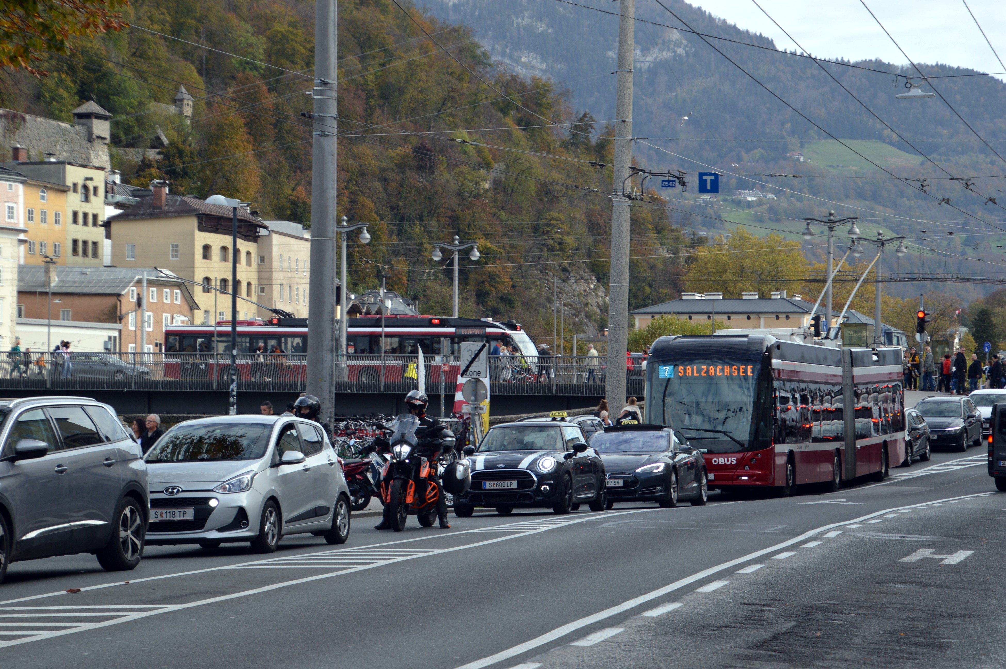 Die Verkehrsprobleme sind mittlerweile derart massiv, dass es schon seit längerem nicht mehr auf bestimmte Uhrzeiten ankommt. Stau kann man in Salzburg eigentlich immer haben. Dem entsprechend steckt dann auch der ÖV fest.
