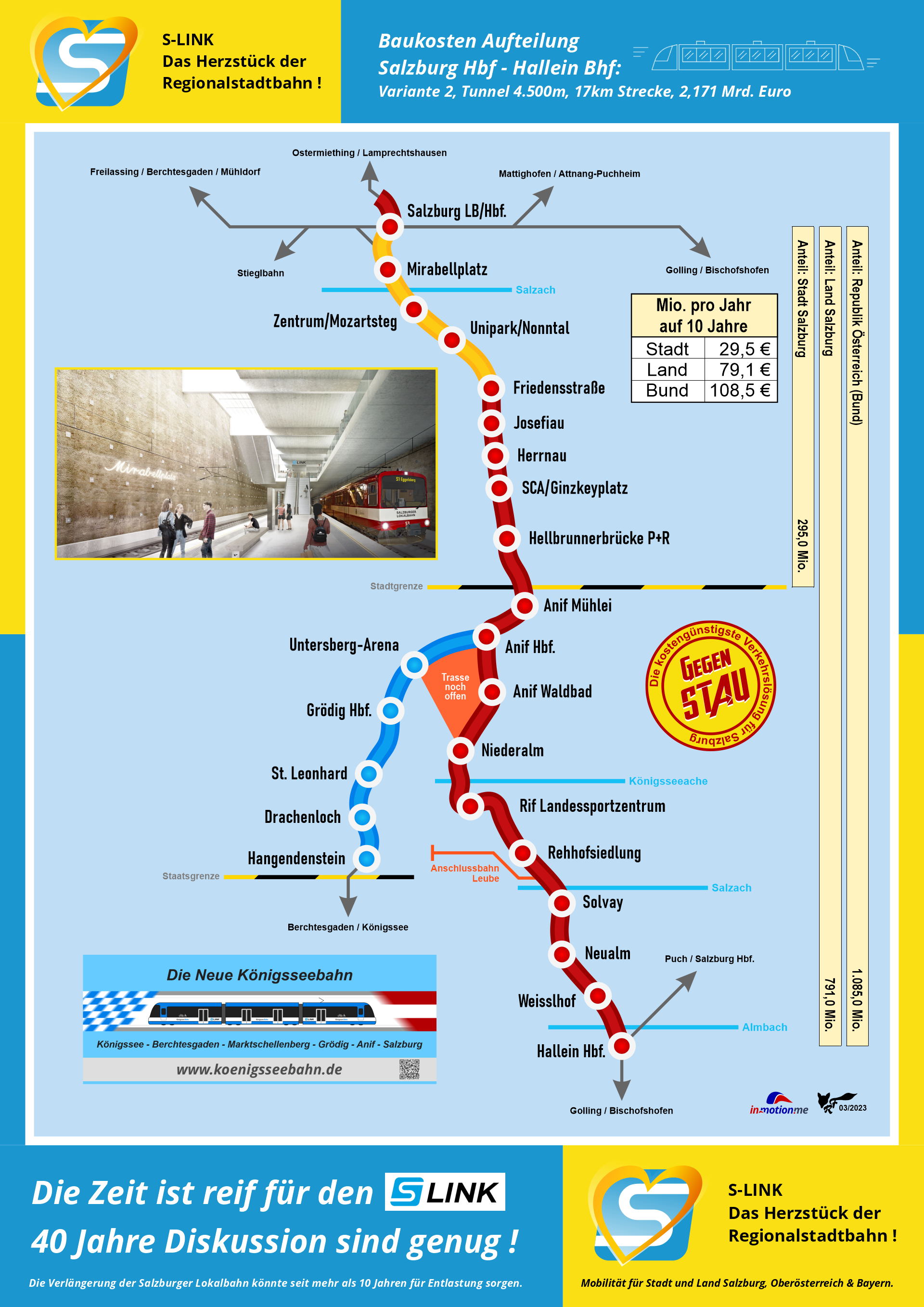 Das Kernstück des gesamten Regional-Stadtbahn-Netzes ist der rund 4,5 Kilometer lange Innenstadt-Tunnel (bis Friedensstraße) in der Mozartstadt Salzburg, der S-Link. Mit diesem Tunnel wird ein ca. 800 Kilometer langes Schienennetz im Radius von ca. 70 Kilometer direkt und umsteigefrei mit der Innenstadt von Salzburg verknüpft.